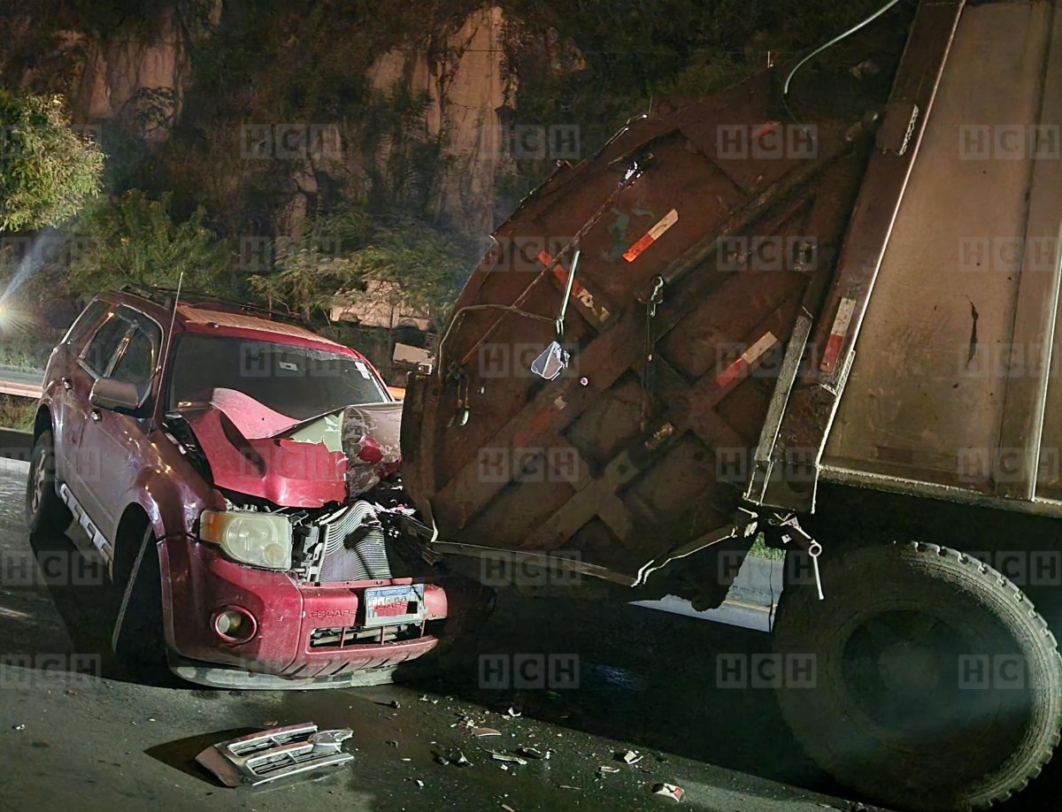 Un aparatoso choque ocurrió anoche en el bulevar FF.AA., a la altura de la col. 21 de febrero, donde un vehículo colisionó contra un camión recolector de basura que estaba averiado.