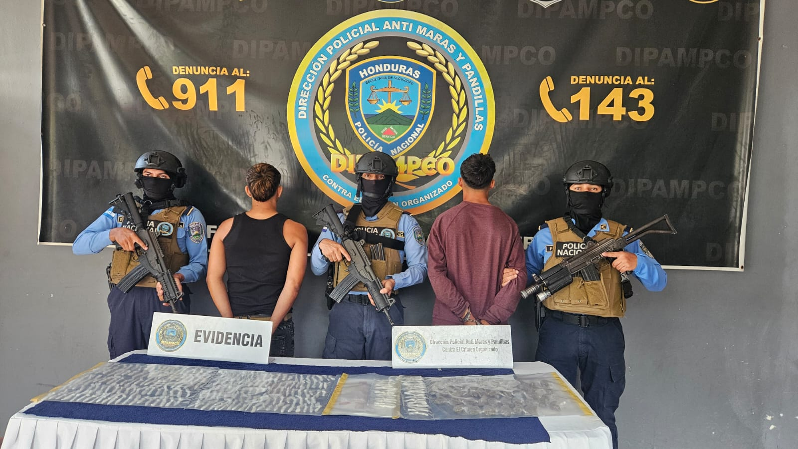Mediante una operación de vigilancia y seguimiento en la colonia la Rubí, Choloma, Cortés, un equipo de la Dirección Policial Anti Maras y Pandillas Contra el Crimen Organizado (DIPAMPCO) le dio detención a dos personas supuestos integrantes de la estructura criminal Pandilla 18.