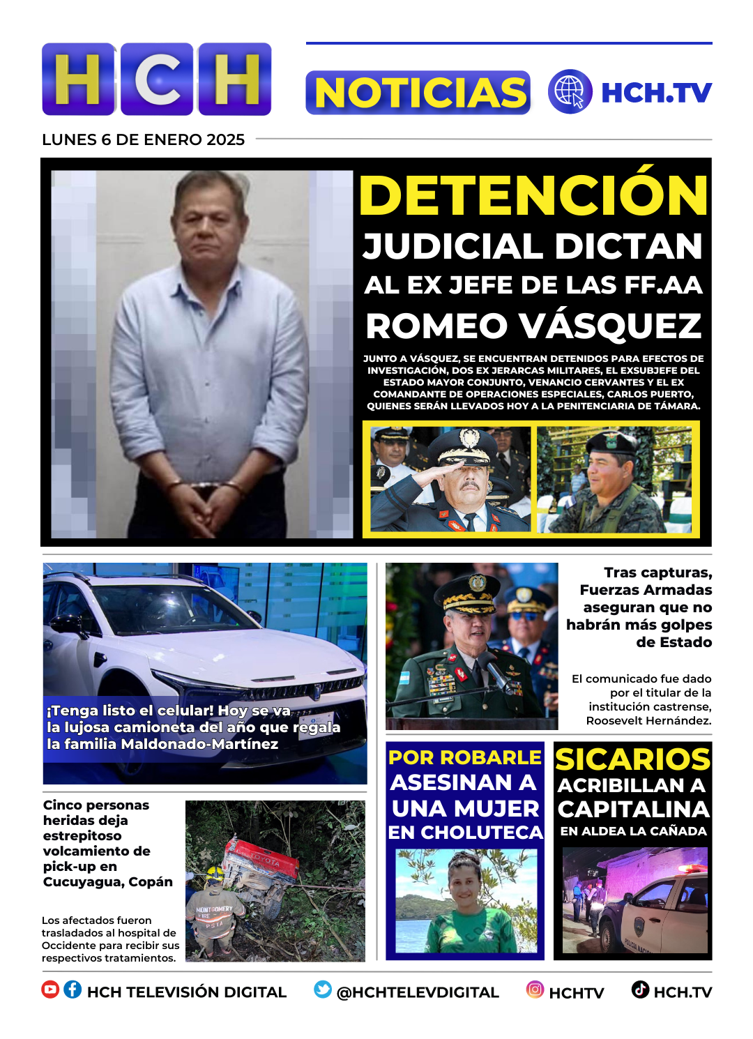 © 2025 - HCH Televisión Digital - Noticias de Honduras y el Mundo. Anillo Periférico, Complejo Empresarial Tegucigalpa, Honduras, C.A. Tel: (504) 2235-3245 / 2235-3246 / 2235-4875 / 2235-4876 LLÁMENOS GRATIS DESDE EE.UU: 3052801682 y 3052801735 © Copyright 2025 - HCH Televisión Digital. Todos nuestros contenidos están protegidos con derechos de autor.