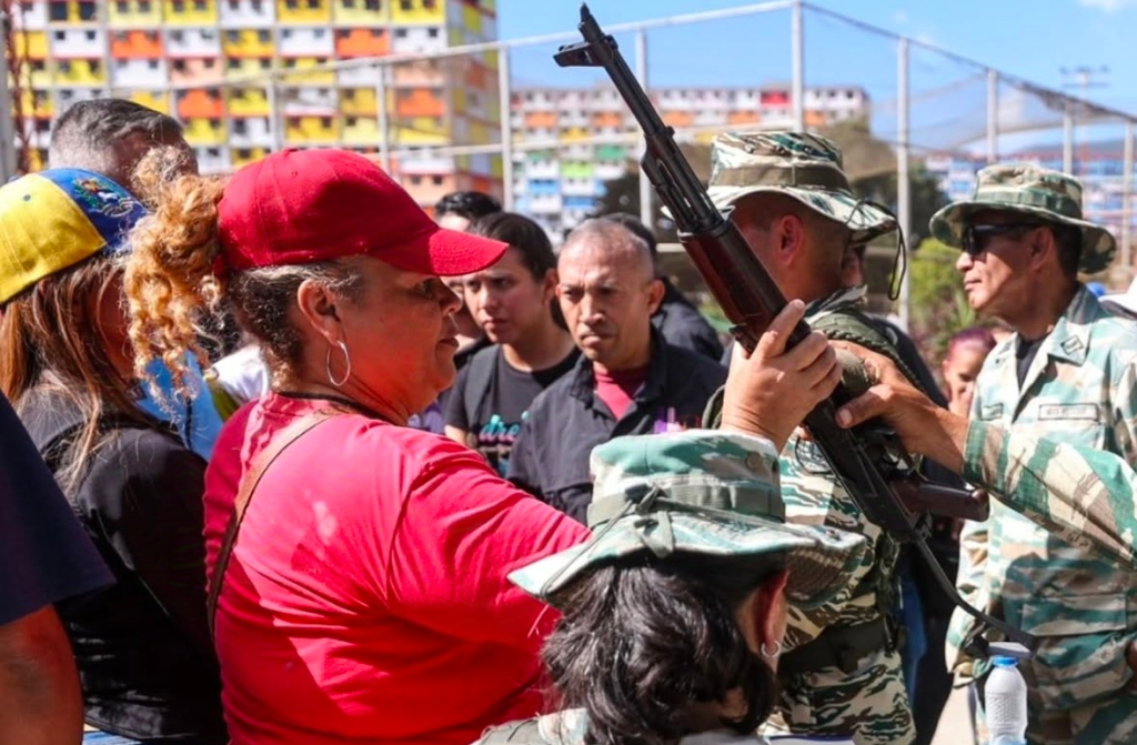 En un nuevo acto de intimidación, el régimen despliega armamento a civiles en un acto en la capital venezolana.