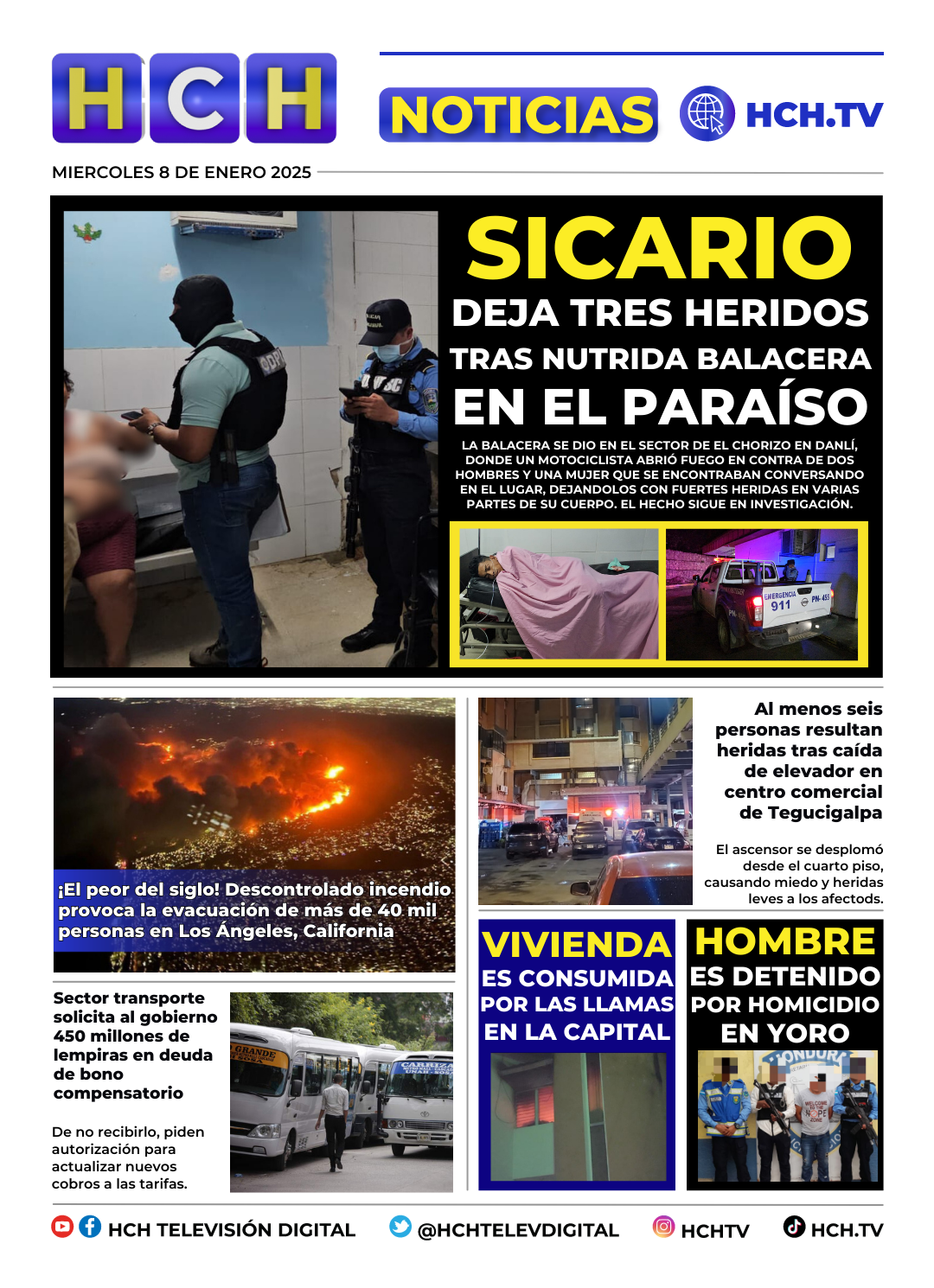 © 2025 - HCH Televisión Digital - Noticias de Honduras y el Mundo. Anillo Periférico, Complejo Empresarial Tegucigalpa, Honduras, C.A. Tel: (504) 2235-3245 / 2235-3246 / 2235-4875 / 2235-4876 LLÁMENOS GRATIS DESDE EE.UU: 3052801682 y 3052801735 © Copyright 2025 - HCH Televisión Digital. Todos nuestros contenidos están protegidos con derechos de autor.