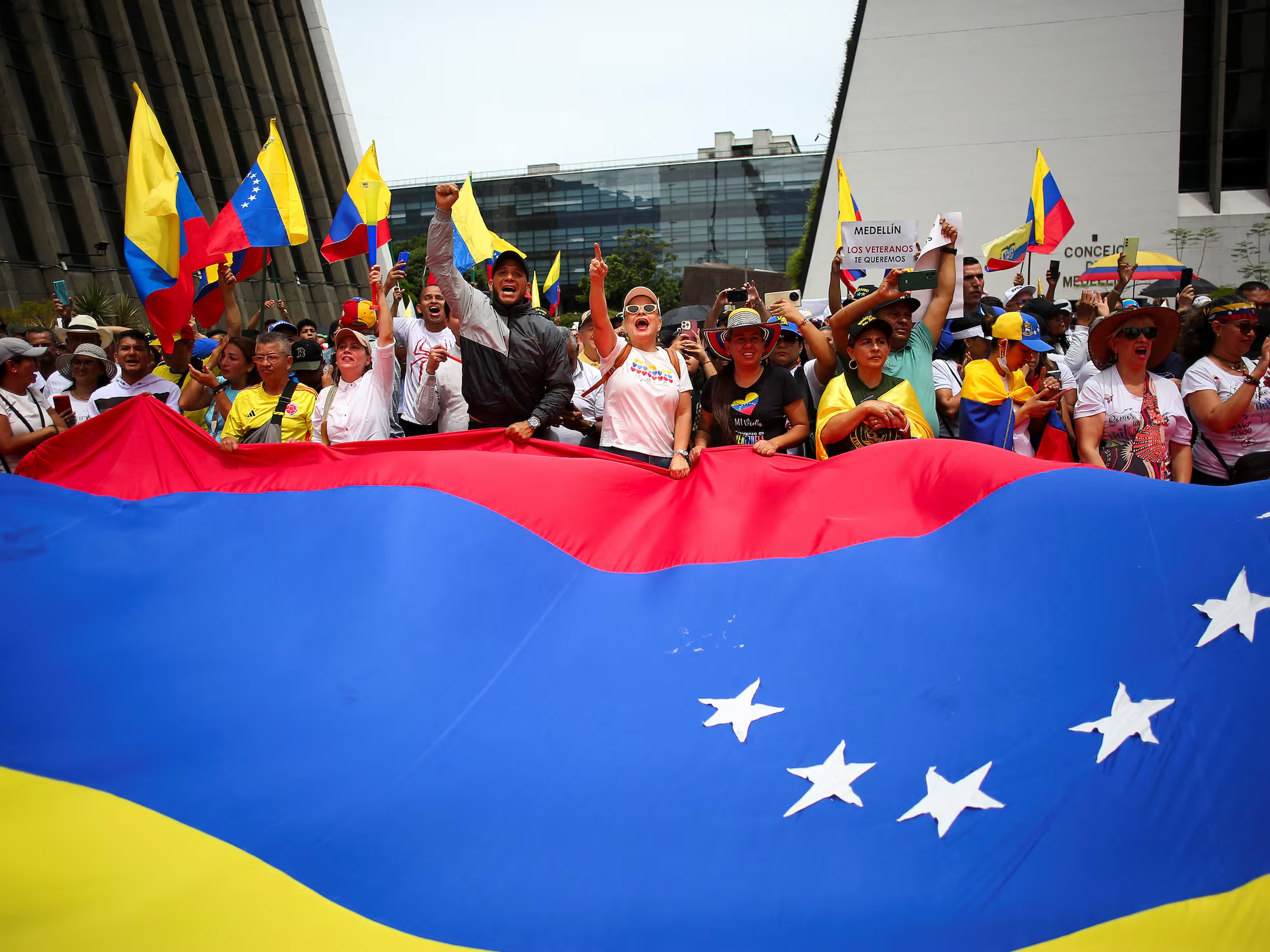 Bajo el lema ‘Gloria bravo pueblo’ –fragmento del himno venezolano–, decenas de venezolanos se empezaron a concentrar en lugares simbólicos de varias ciudades del mundo para expresar su apoyo a los líderes de la oposición. A través de las redes sociales se han compartido imágenes de las manifestaciones en países como Australia, Malasia, Japón, Bélgica o Países Bajos.
