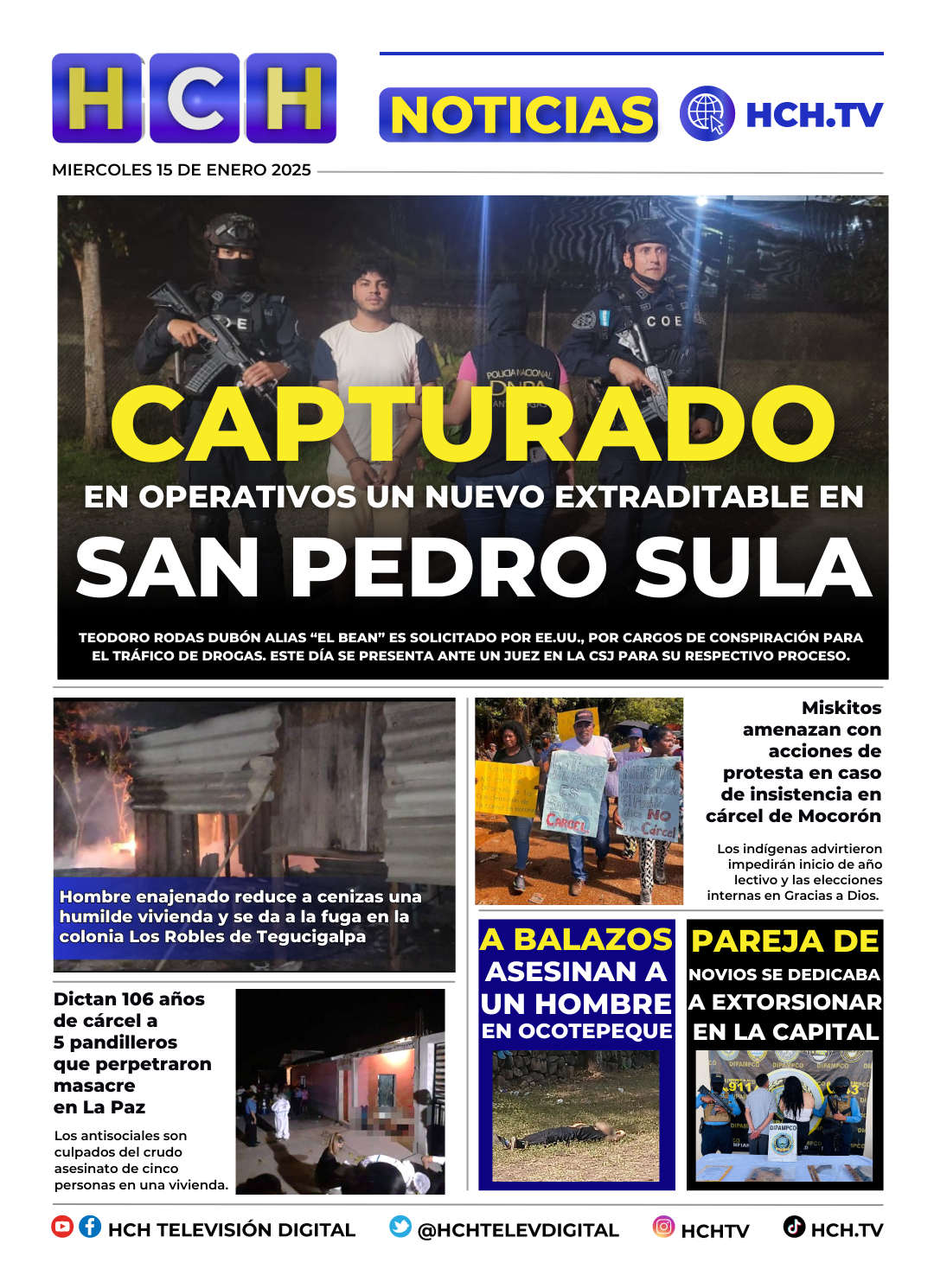 © 2025 - HCH Televisión Digital - Noticias de Honduras y el Mundo. Anillo Periférico, Complejo Empresarial Tegucigalpa, Honduras, C.A. Tel: (504) 2235-3245 / 2235-3246 / 2235-4875 / 2235-4876 LLÁMENOS GRATIS DESDE EE.UU: 3052801682 y 3052801735 © Copyright 2025 - HCH Televisión Digital. Todos nuestros contenidos están protegidos con derechos de autor.