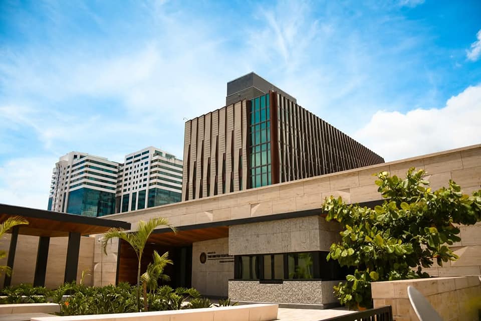 la firma local Jorge Caballero Arquitectos, y construido por B.L. Harbert International, el