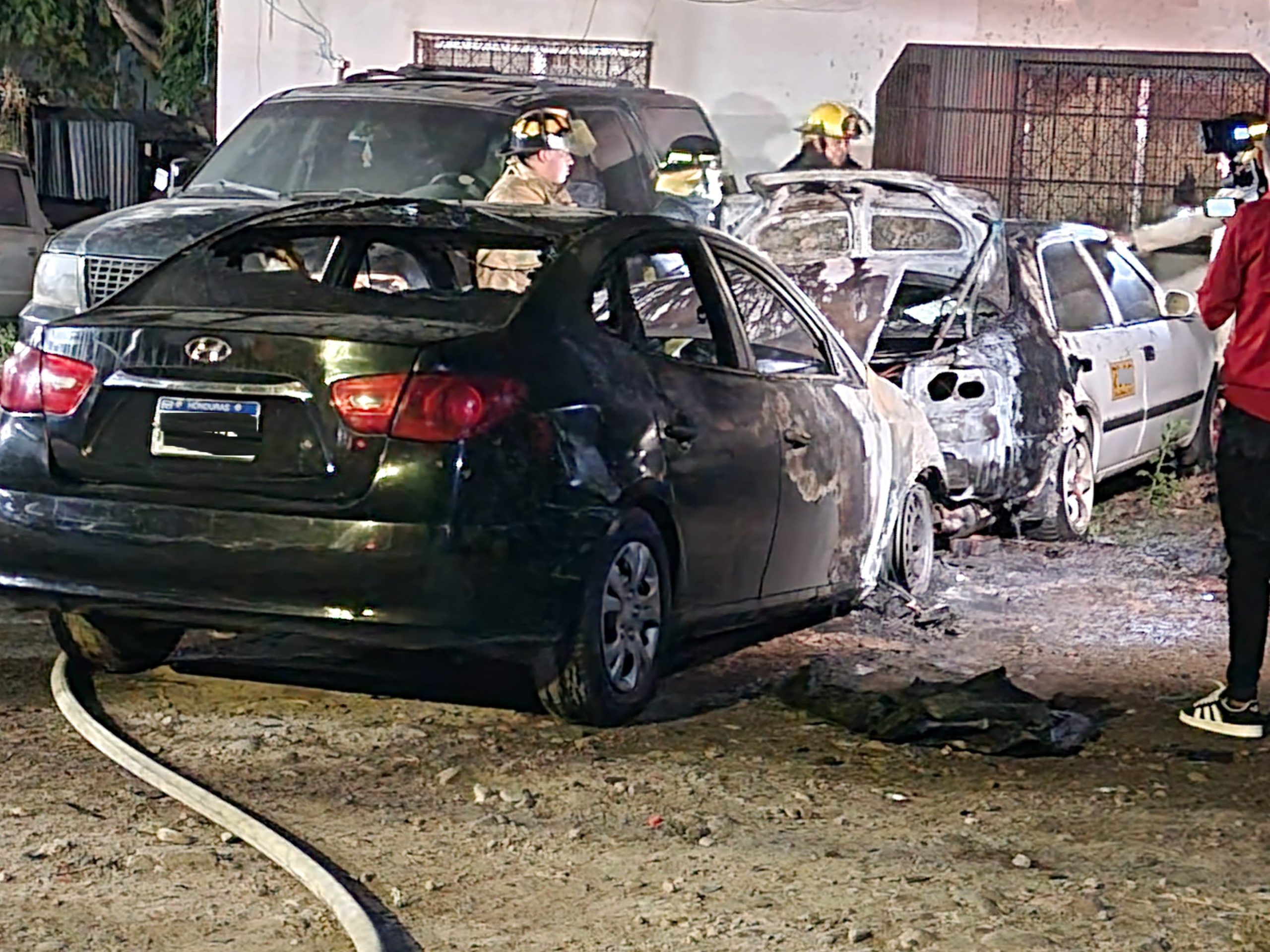 Al menos dos vehículos quemados y un tercero con daños leves, dejó un incendio vehicular registrado en el interior de un taller, en la col. Predios del Recreo en Comayagüela.