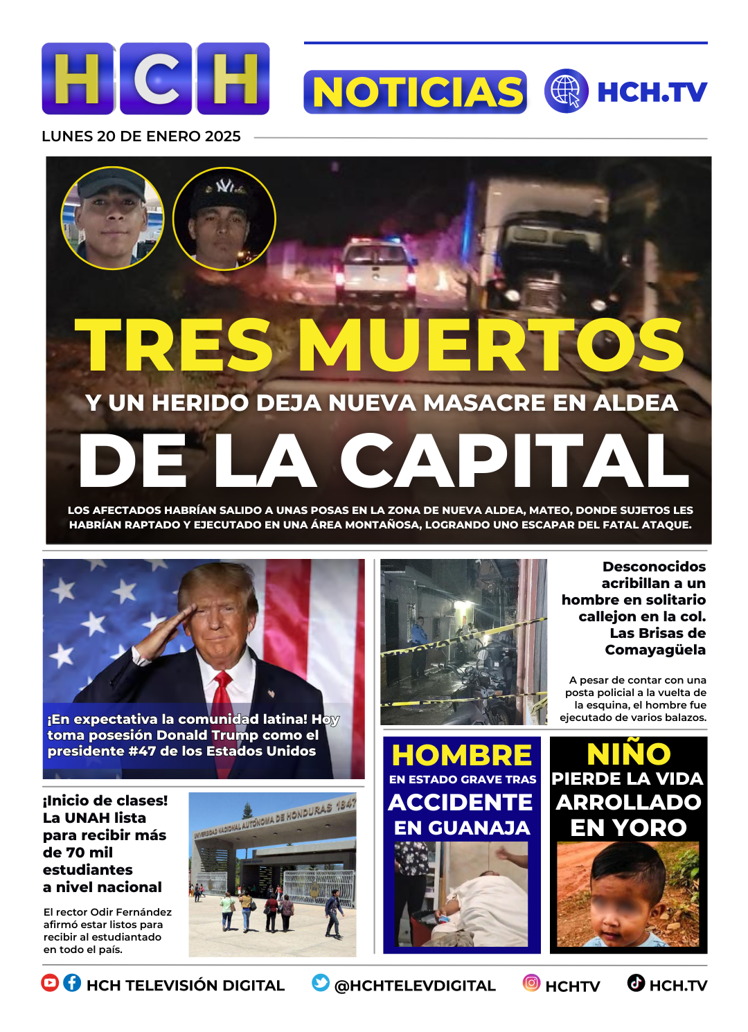 © 2025 - HCH Televisión Digital - Noticias de Honduras y el Mundo. Anillo Periférico, Complejo Empresarial Tegucigalpa, Honduras, C.A. Tel: (504) 2235-3245 / 2235-3246 / 2235-4875 / 2235-4876 LLÁMENOS GRATIS DESDE EE.UU: 3052801682 y 3052801735 © Copyright 2025 - HCH Televisión Digital. Todos nuestros contenidos están protegidos con derechos de autor.