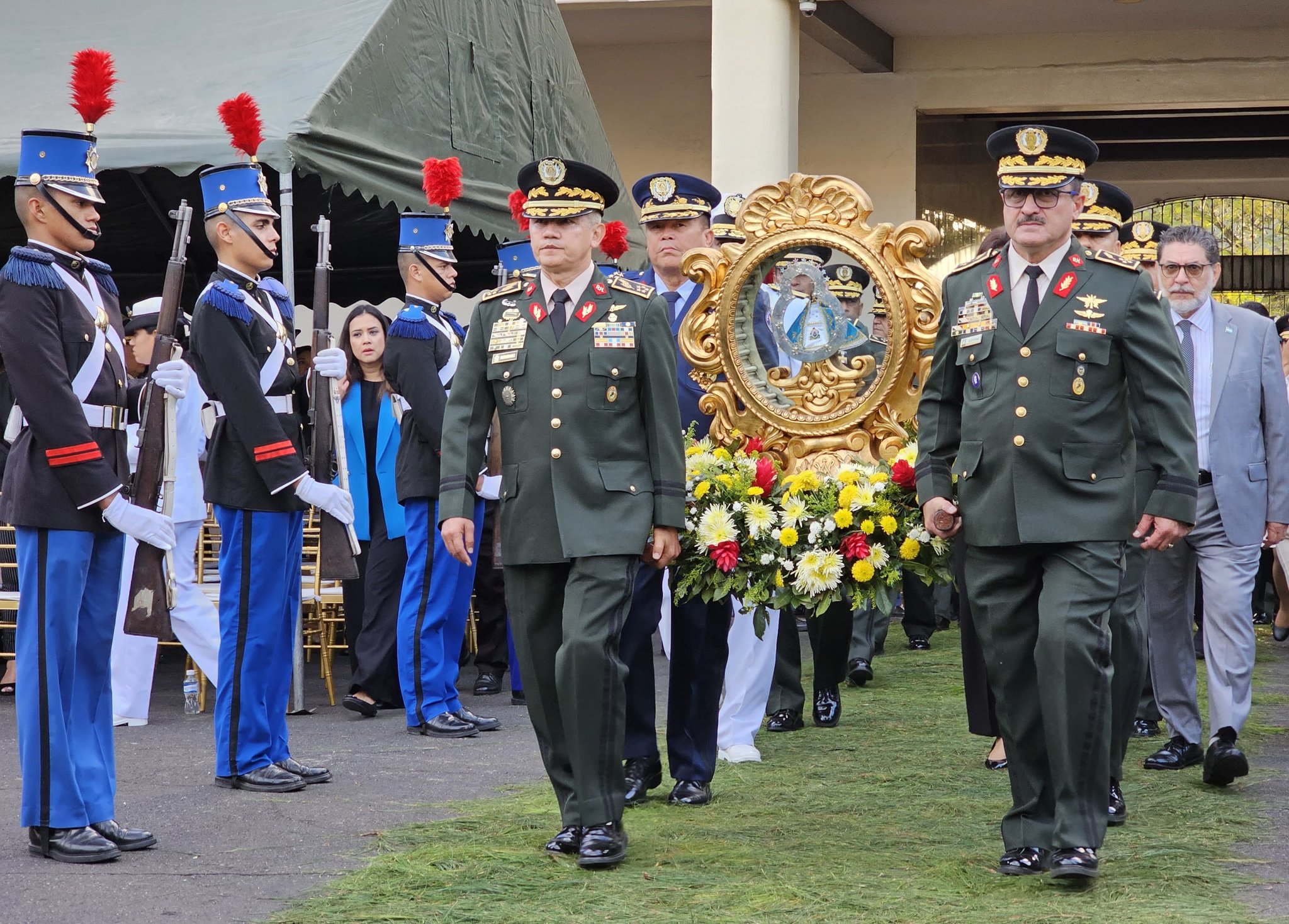 Miembros de las Fuerzas Armadas de Honduras, trasladan este martes a la Virgen de Suyapa hacía el Estado Mayor Conjunto, esto con motivo de una misa por parte de la institución castrense.