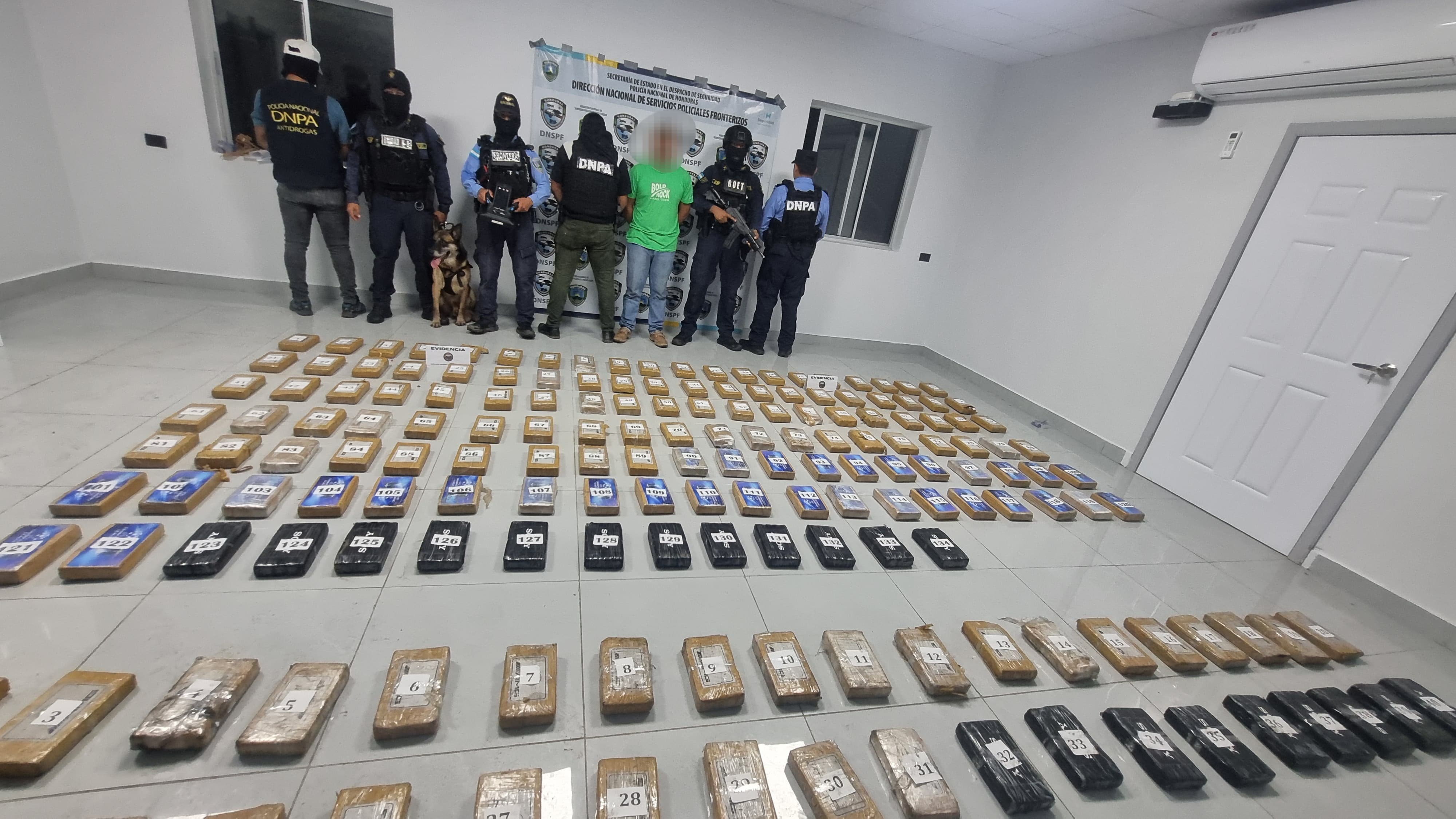 Esta importante operación se llevó a cabo a la altura del punto de control fronterizo de Ceibita Norte, Quimistán, Santa Bárbara, por unidades especializadas de esta Dirección, como el Grupo de Operaciones Especiales Tácticas (GOET), y la Unidad Canina (K-9).
