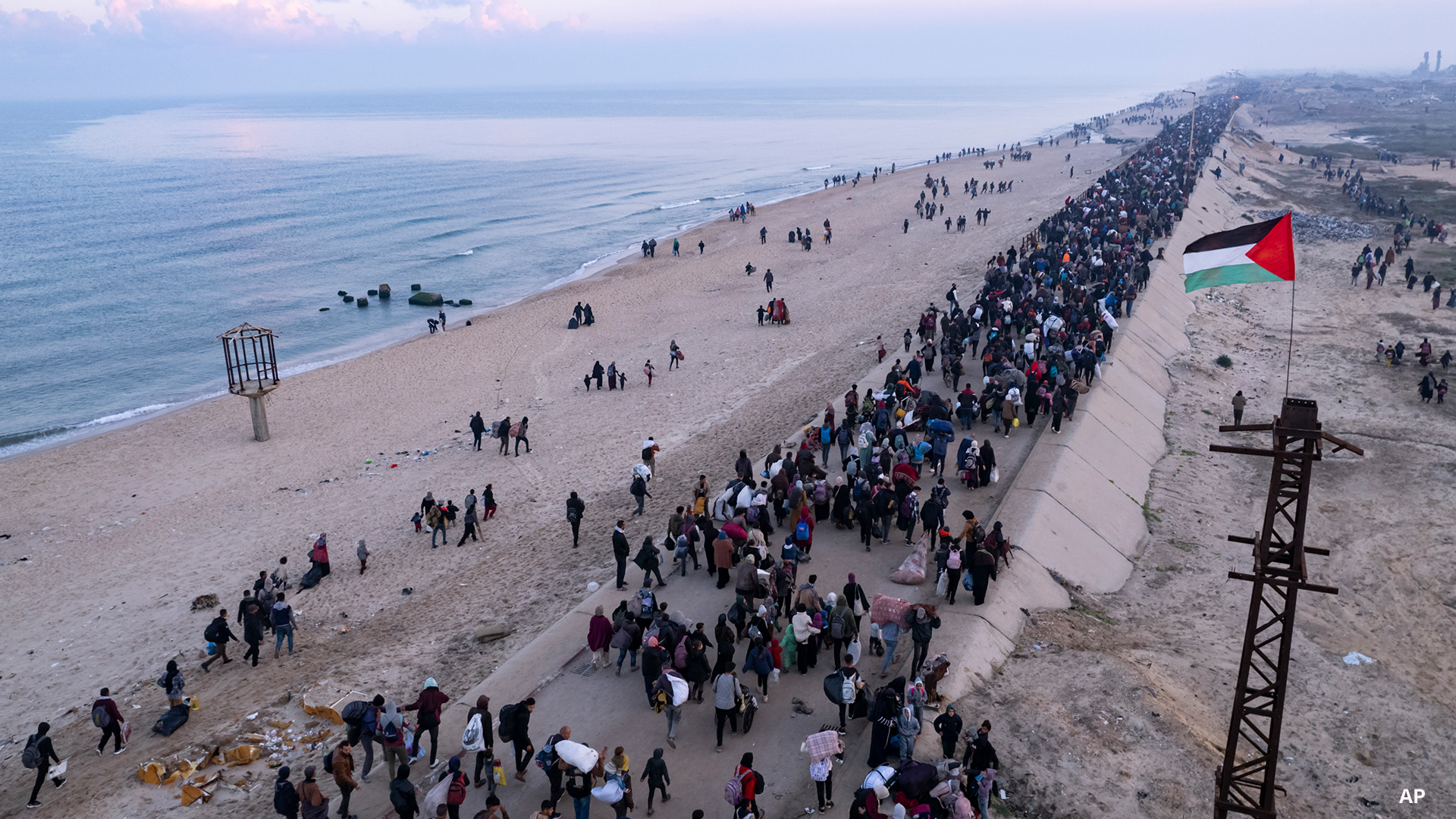 Decenas de miles de palestinos desplazados iniciaron su viaje de regreso al norte de la Franja de Gaza, tras el acuerdo de última hora alcanzado durante la noche entre Israel y Hamás para la liberación de otros seis rehenes en manos del grupo islamista.
