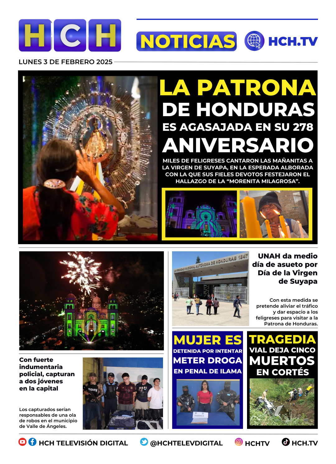 © 2025 - HCH Televisión Digital - Noticias de Honduras y el Mundo. Anillo Periférico, Complejo Empresarial Tegucigalpa, Honduras, C.A. Tel: (504) 2235-3245 / 2235-3246 / 2235-4875 / 2235-4876 LLÁMENOS GRATIS DESDE EE.UU: 3052801682 y 3052801735 © Copyright 2025 - HCH Televisión Digital. Todos nuestros contenidos están protegidos con derechos de autor.