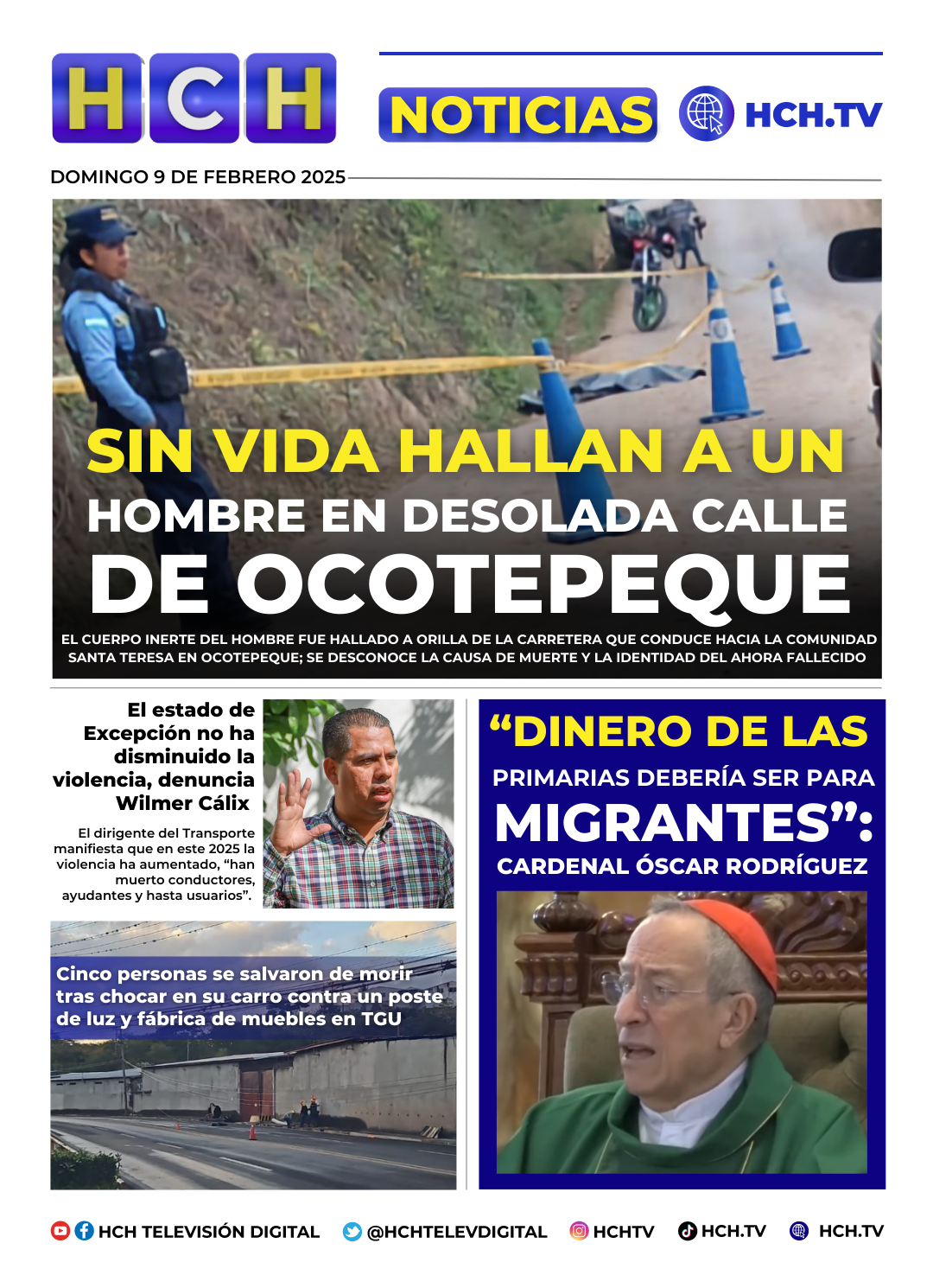 © 2025 - HCH Televisión Digital - Noticias de Honduras y el Mundo. Anillo Periférico, Complejo Empresarial Tegucigalpa, Honduras, C.A. Tel: (504) 2235-3245 / 2235-3246 / 2235-4875 / 2235-4876 LLÁMENOS GRATIS DESDE EE.UU: 3052801682 y 3052801735 © Copyright 2025 - HCH Televisión Digital. Todos nuestros contenidos están protegidos con derechos de autor.