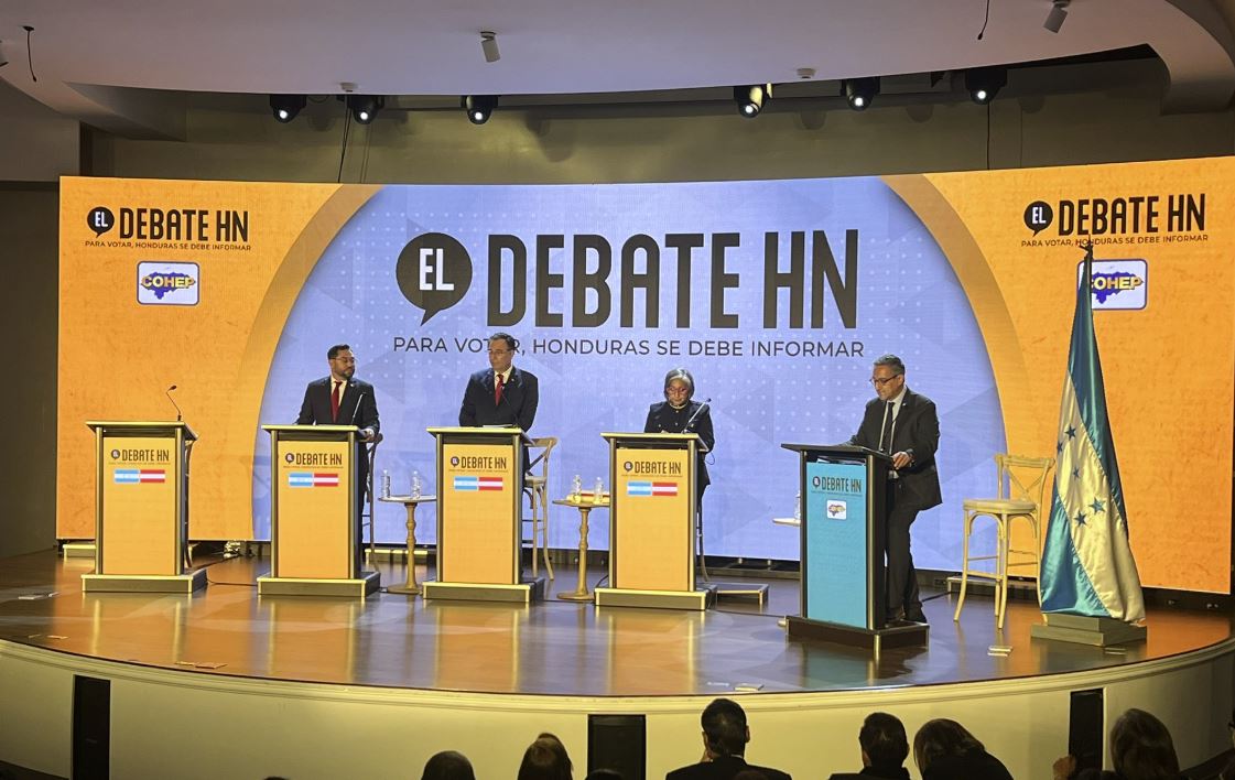 Esta noche se realizó el debate presidencial en el que participaron los aspirantes presidenciales del Partido Liberal de Honduras Maribel Espinoza, Luis Zelaya y Jorge Cálix. El gran ausente fue Salvador Nasralla.