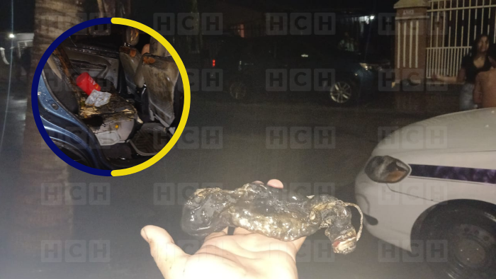 La madrugada de este domingo, delincuentes intentaron quemar un vehículo usando una bomba casera en la colonia Kawas de la ciudad de La Ceiba, Atlántida.