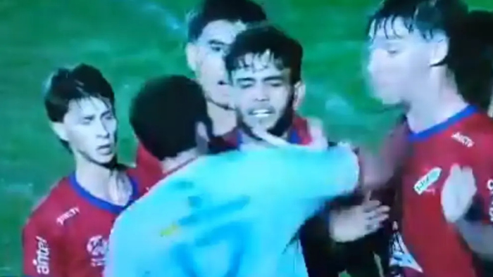 Con un rival ya tendido en el terreno de juego tras una dura entrada de Mario González, futbolista del Soriano Capital, los protagonistas del encuentro formaron una trifulca. En medio de ella, González dio un salvaje puñetazo en la cara a Enzo Echeveste, que se quedó KO sobre el césped.