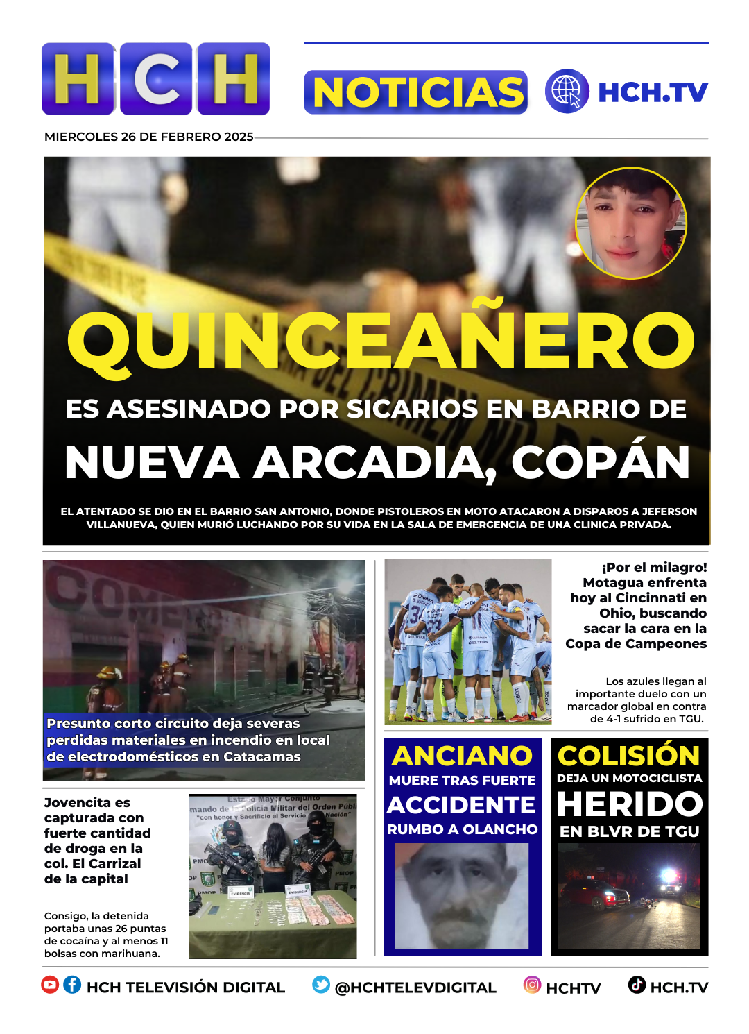 © 2025 - HCH Televisión Digital - Noticias de Honduras y el Mundo. Anillo Periférico, Complejo Empresarial Tegucigalpa, Honduras, C.A. Tel: (504) 2235-3245 / 2235-3246 / 2235-4875 / 2235-4876 LLÁMENOS GRATIS DESDE EE.UU: 3052801682 y 3052801735 © Copyright 2025 - HCH Televisión Digital. Todos nuestros contenidos están protegidos con derechos de autor.