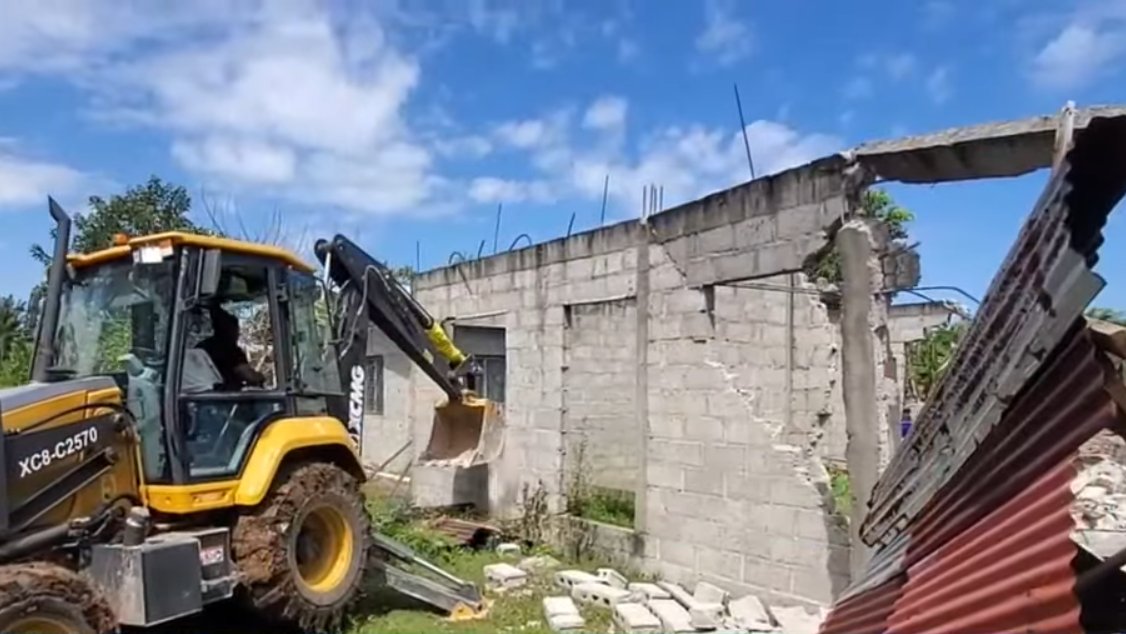 Luego de haberse realizado el trabajo de desalojo en el sector de Bosques de Adular en el municipio de La Ceiba, Atlántida, donde unas 59 familias fueron removidas de sus hogares, inician la destrucción de viviendas en el sector, contando con la presencia de una Black Mamba para efectos de resguardo policial.