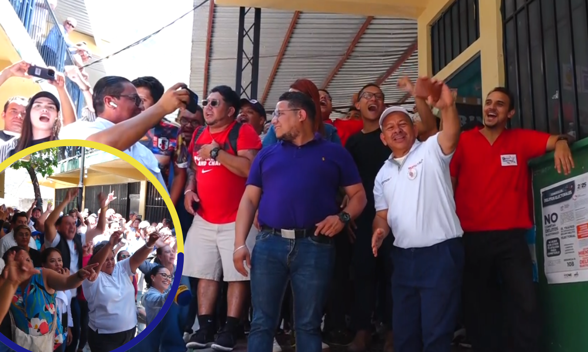Se caldean los ánimos en el CEB Maximiliano Sagastume, donde simpatizantes del Partido Libre y del Partido Nacional gritan sus diferentes consignas mientras las personas ejercen su derecho al sufragio en la fiesta democrática atrasada de este domingo.