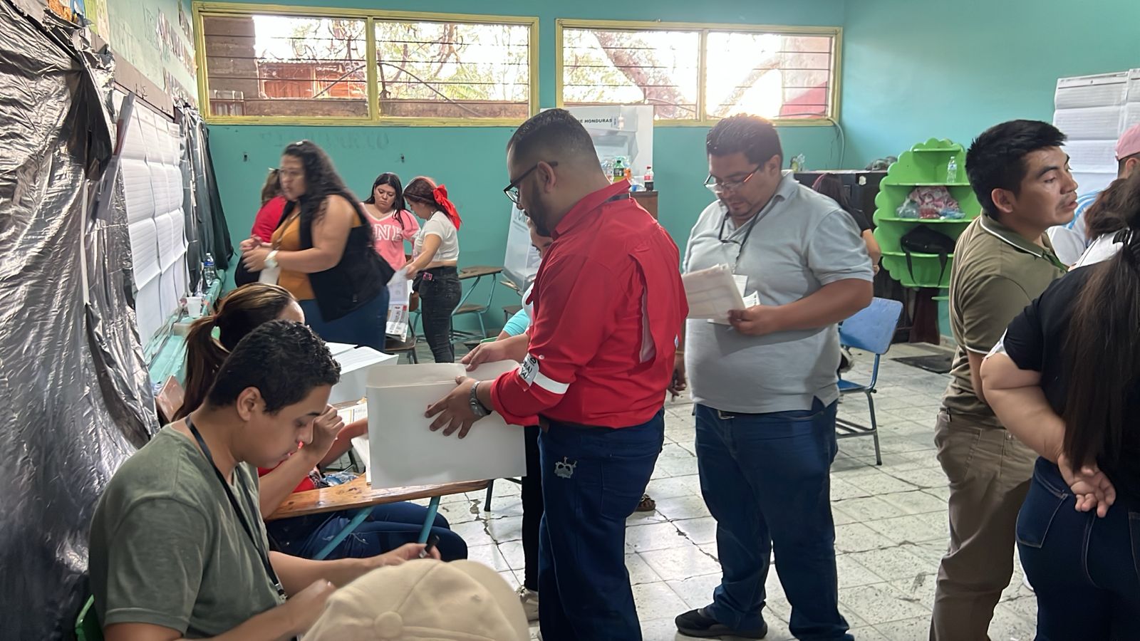 En el lugar se encuentran observadores nacionales e internacionales, miembros de las Fuerzas Armadas, miembros de mesa y población en general, todos a la expectativa de que el proceso se desarrolle de forma normal.
