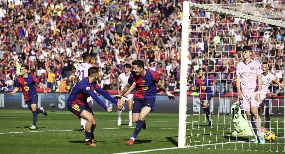 El Barca continúa líder en solitario tras vencer este domingo al Girona con un doblete de Lewandowski, un gol de Ferran y un tanto en propia de Krejci