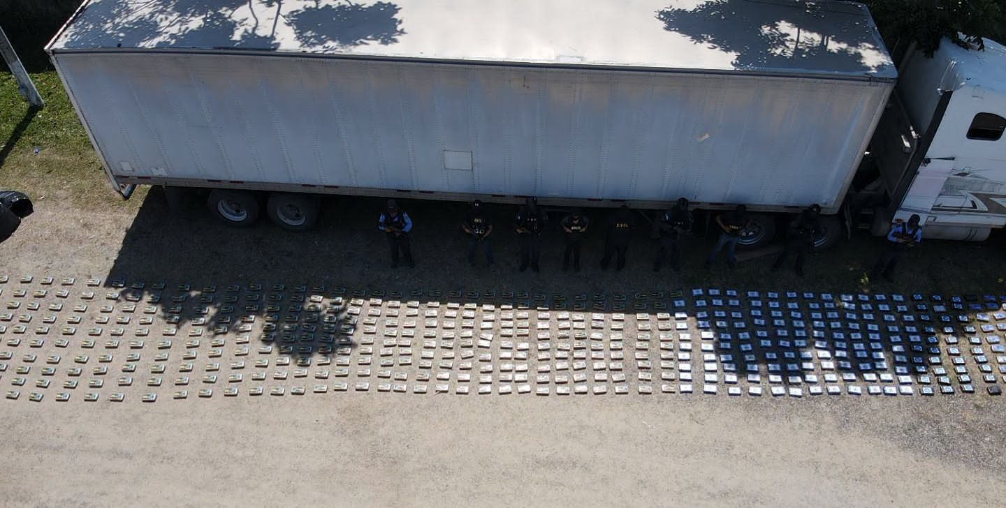 La operación fue ejecutada de manera simultánea en los municipios de Chamelecón y Villanueva, departamento de Cortés, como resultado de intensas labores de investigación e inteligencia policial. Durante el operativo, se requirieron dos vehículos: un cabezal marca Freightliner, en cuyo interior se encontraron caletas utilizadas para ocultar la droga, y un pick-up marca L200.
