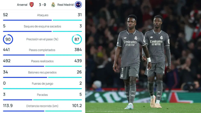 Según las estadísticas proporcionadas por la UEFA, el Real Madrid corrió casi 13 kilómetros menos que el Arsenal. Mientras los Gunners recorrieron en total 113,9 kilómetros, los de Ancelotti hicieron 101,2 aun sin controlar la posesión del encuentro.