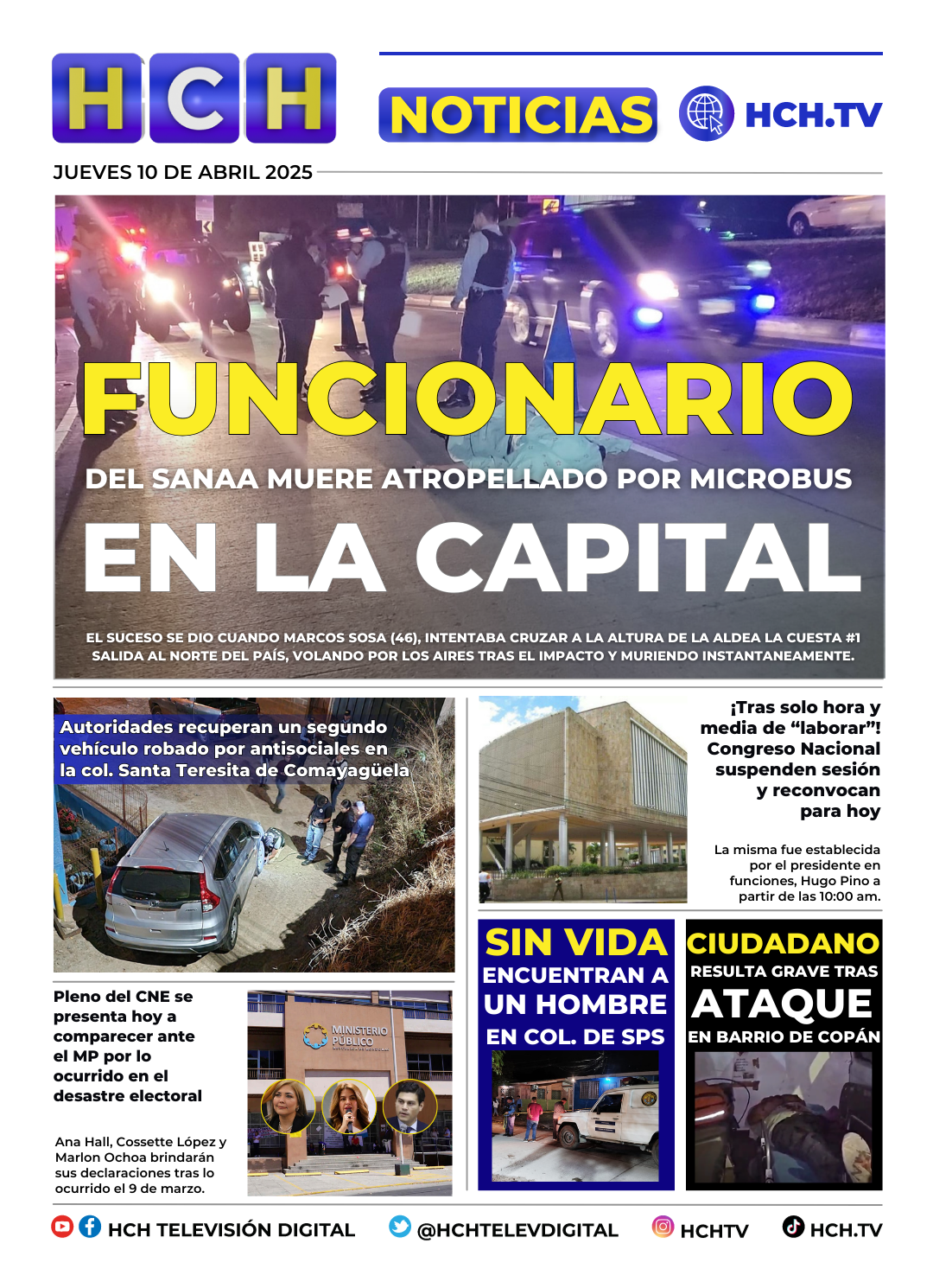 © 2025 - HCH Televisión Digital - Noticias de Honduras y el Mundo. Anillo Periférico, Complejo Empresarial Tegucigalpa, Honduras, C.A. Tel: (504) 2235-3245 / 2235-3246 / 2235-4875 / 2235-4876 LLÁMENOS GRATIS DESDE EE.UU: 3052801682 y 3052801735 © Copyright 2025 - HCH Televisión Digital. Todos nuestros contenidos están protegidos con derechos de autor.