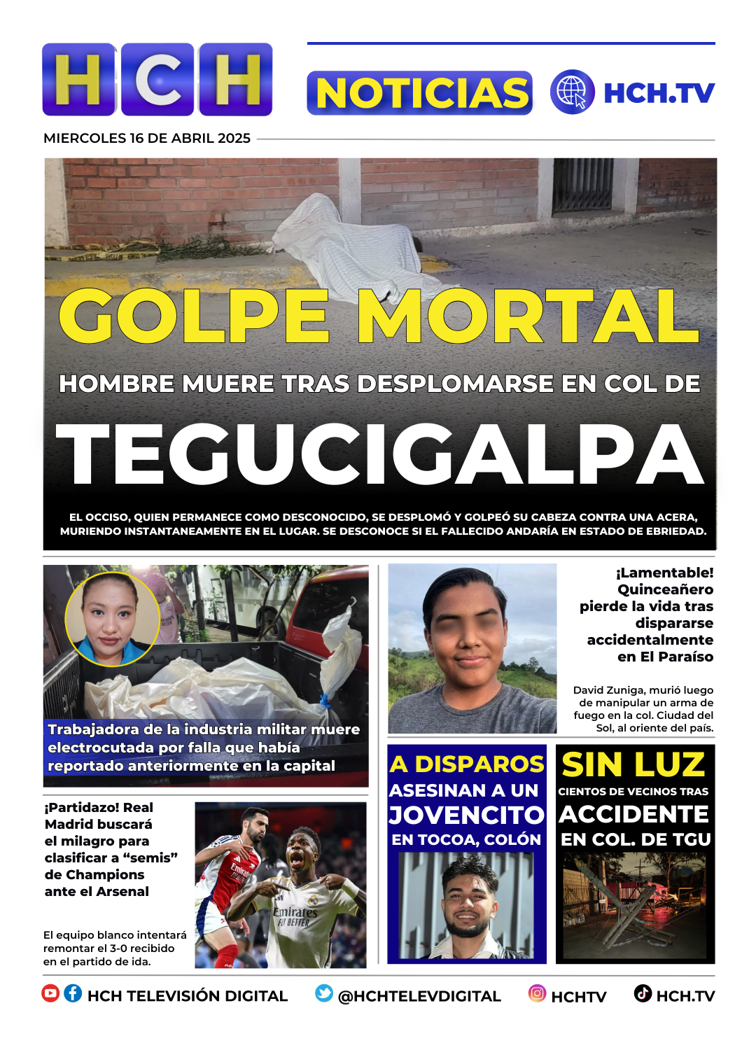 © 2025 - HCH Televisión Digital - Noticias de Honduras y el Mundo. Anillo Periférico, Complejo Empresarial Tegucigalpa, Honduras, C.A. Tel: (504) 2235-3245 / 2235-3246 / 2235-4875 / 2235-4876 LLÁMENOS GRATIS DESDE EE.UU: 3052801682 y 3052801735 © Copyright 2025 - HCH Televisión Digital. Todos nuestros contenidos están protegidos con derechos de autor.
