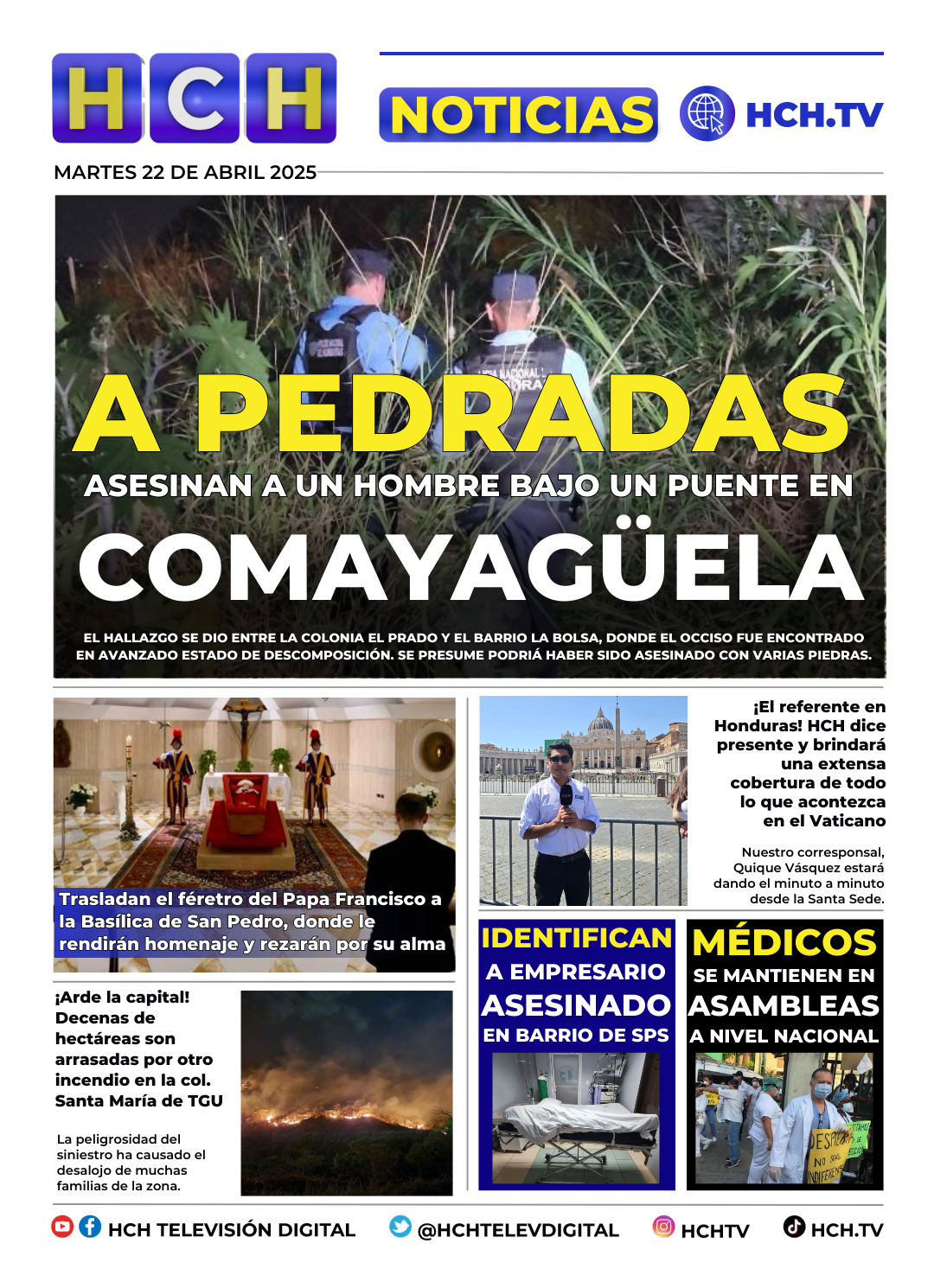 © 2025 - HCH Televisión Digital - Noticias de Honduras y el Mundo. Anillo Periférico, Complejo Empresarial Tegucigalpa, Honduras, C.A. Tel: (504) 2235-3245 / 2235-3246 / 2235-4875 / 2235-4876 LLÁMENOS GRATIS DESDE EE.UU: 3052801682 y 3052801735 © Copyright 2025 - HCH Televisión Digital. Todos nuestros contenidos están protegidos con derechos de autor.