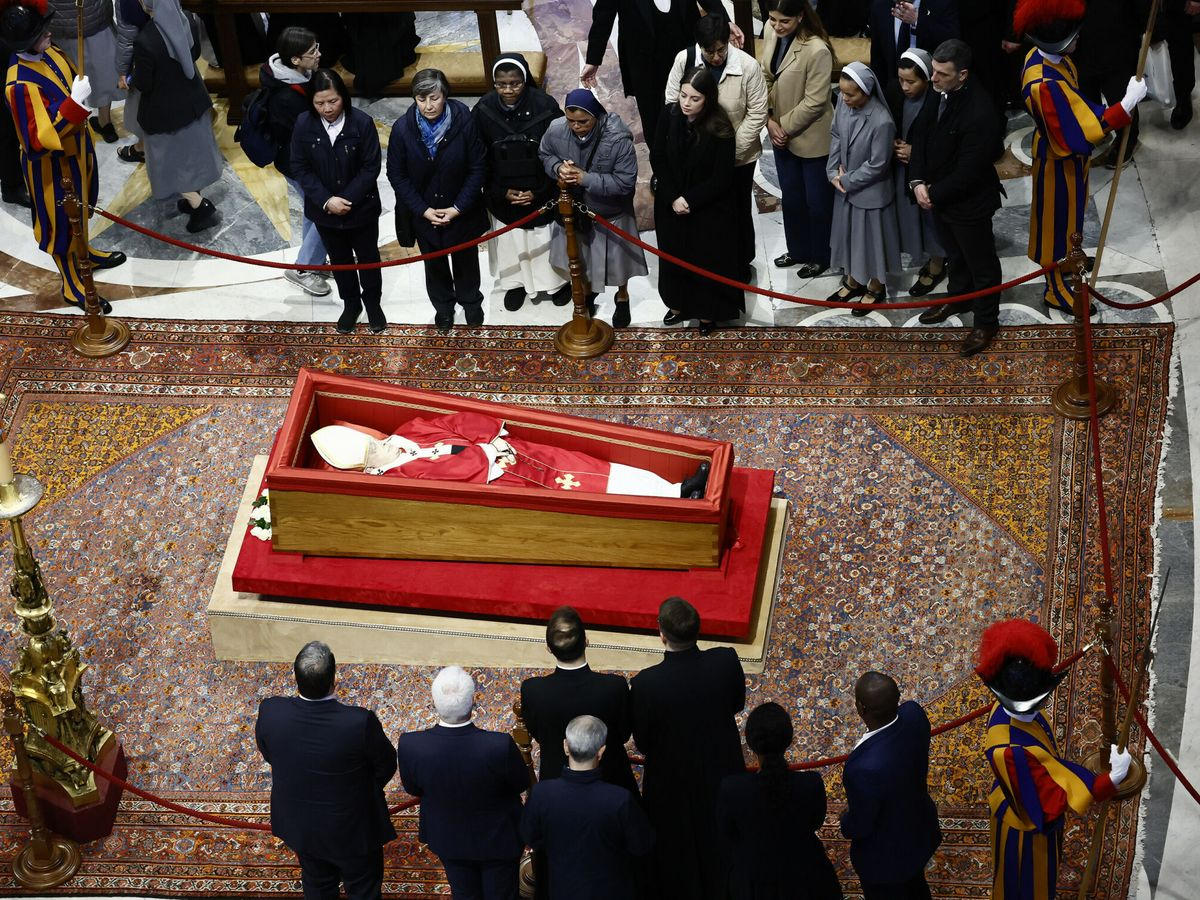 El cuerpo del pontífice ha sido expuesto en la basílica de San Pedro del Vaticano para permitir a los fieles cada día darle el último adiós incluso más allá de la medianoche, hasta el viernes, cuando se clausurará el féretro.