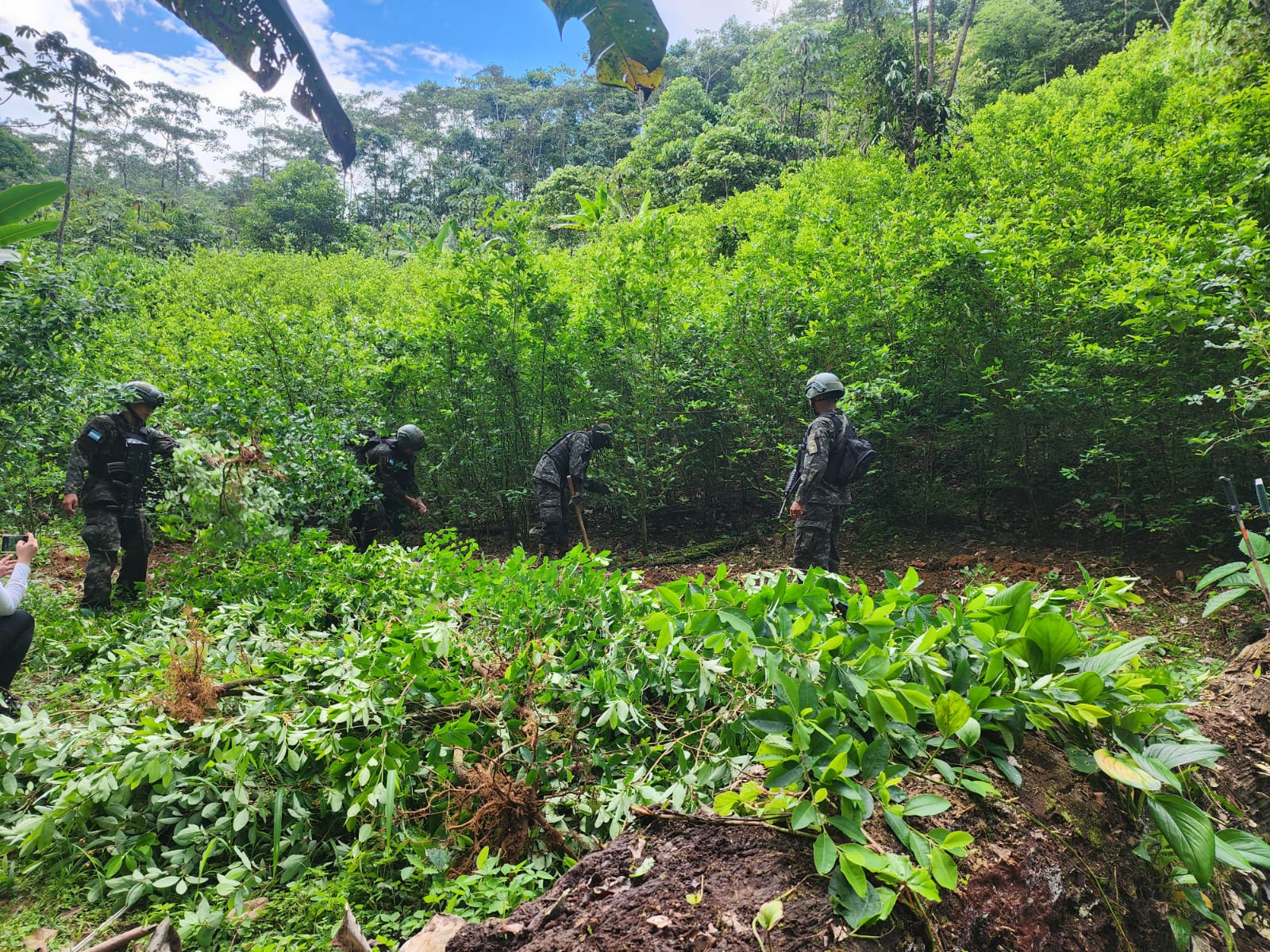 Las Fuerzas Armadas a través de equipos de la Dirección de Información Estratégica, 15 Batallón de Fuerzas Especiales y Primer Batallón de Protección Ambiental en coordinación con la Dirección de Lucha Contra el Narcotráfico en las últimas horas localizó y aseguró dos plantaciones con 45,728 arbustos de hoja de coca en Olancho y Colón.