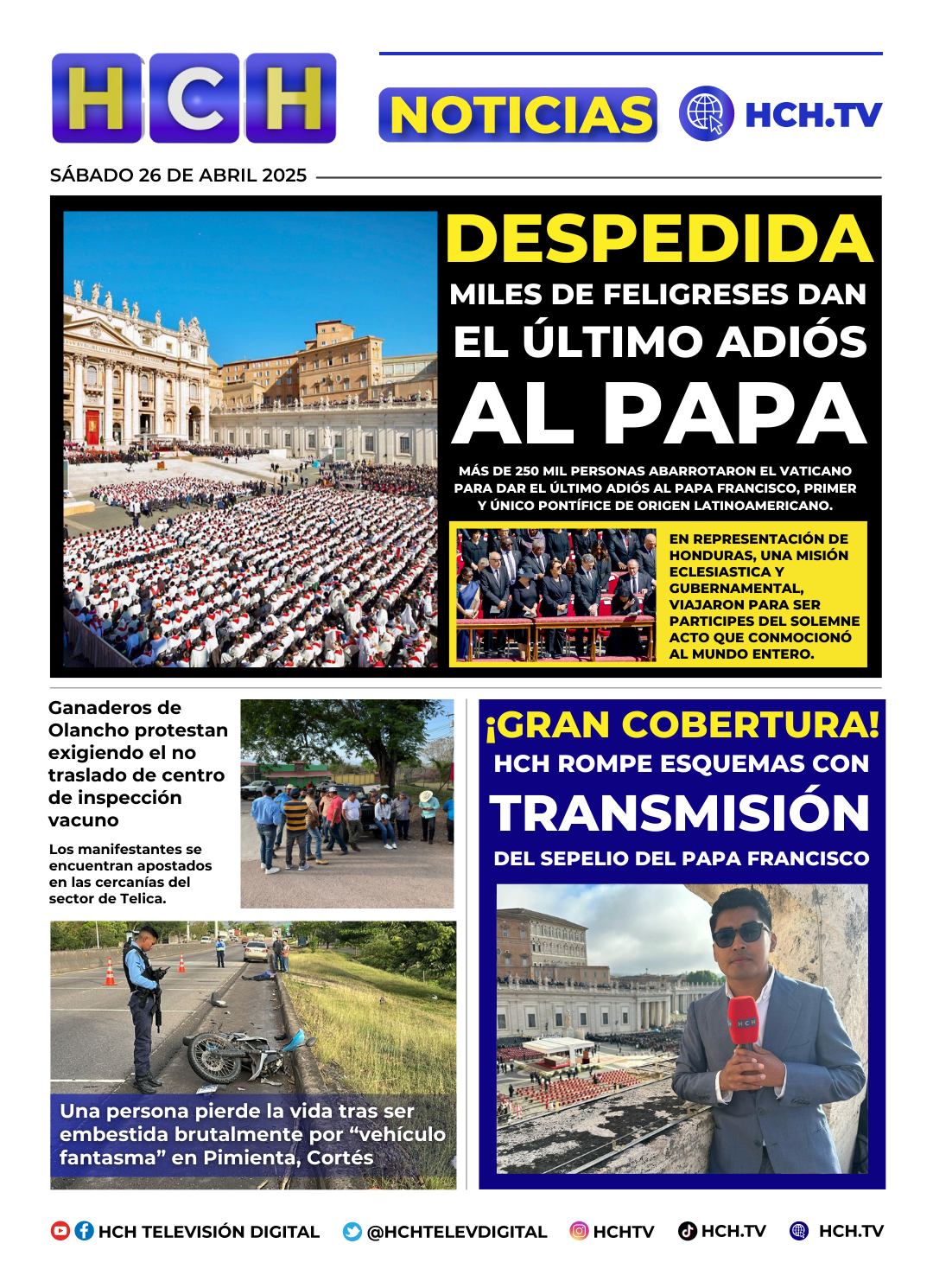 © 2025 - HCH Televisión Digital - Noticias de Honduras y el Mundo. Anillo Periférico, Complejo Empresarial Tegucigalpa, Honduras, C.A. Tel: (504) 2235-3245 / 2235-3246 / 2235-4875 / 2235-4876 LLÁMENOS GRATIS DESDE EE.UU: 3052801682 y 3052801735 © Copyright 2025 - HCH Televisión Digital. Todos nuestros contenidos están protegidos con derechos de autor.