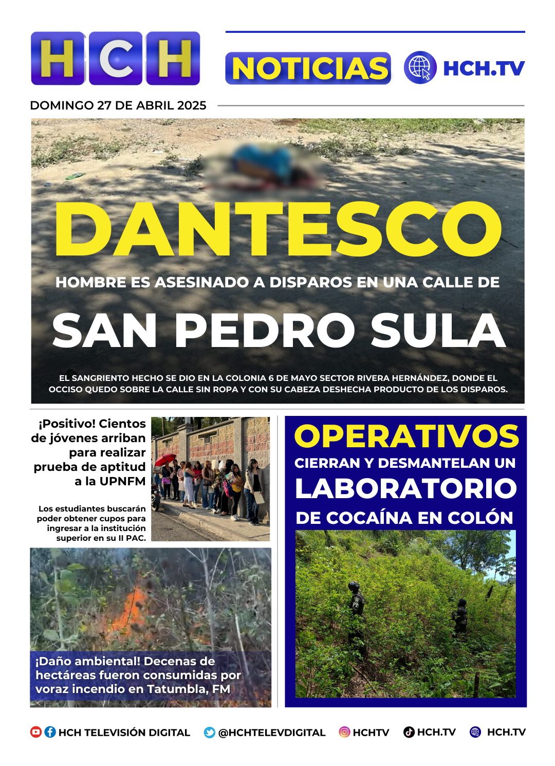 © 2025 - HCH Televisión Digital - Noticias de Honduras y el Mundo. Anillo Periférico, Complejo Empresarial Tegucigalpa, Honduras, C.A. Tel: (504) 2235-3245 / 2235-3246 / 2235-4875 / 2235-4876 LLÁMENOS GRATIS DESDE EE.UU: 3052801682 y 3052801735 © Copyright 2025 - HCH Televisión Digital. Todos nuestros contenidos están protegidos con derechos de autor.