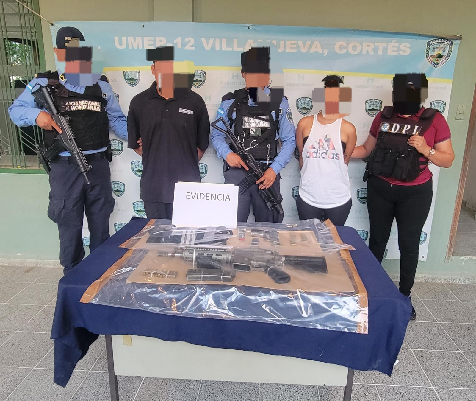 Durante el operativo, se les decomisó un fusil AR-15 con su respectivo cargador y 15 proyectiles, una pistola calibre 9mm, dos cargadores con 30 proyectiles sin percutir y una mohhila de tela color negro.