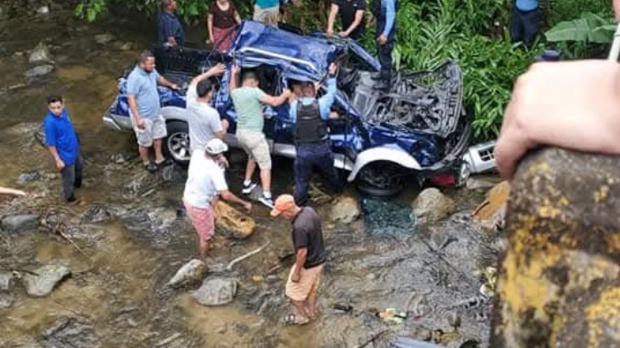 Según reportes, el vehículo, un pick up color rojo, cayó desde lo alto de un puente, donde sus ocupantes tuvieron que ser auxiliados por personas que transitaban la zona.