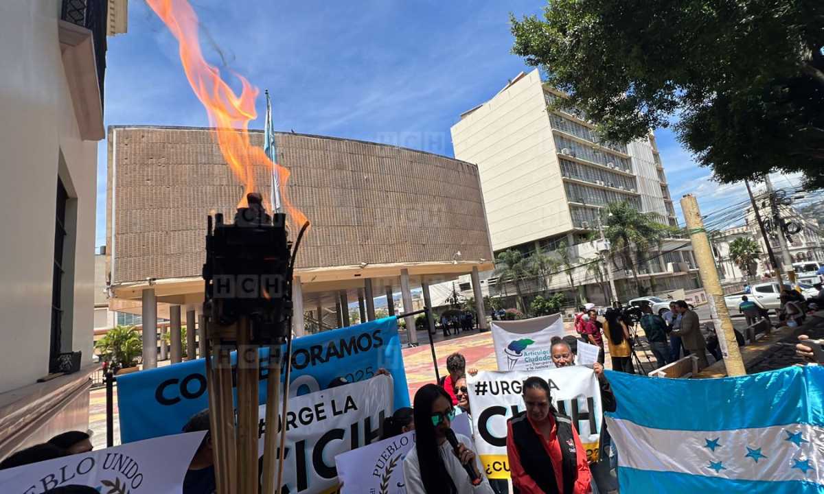 En un nuevo intento por exigir la llegada de la Comisión Internacional Contra la Impunidad en Honduras (CICIH), este miércoles un grupo de hondureños se apostó en los bajos del Congreso Nacional, junto con antorchas para exigir el mecanismo de transparencia en el país.