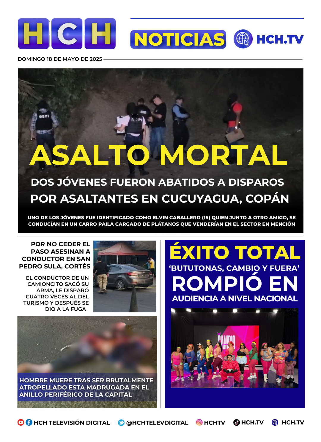 © 2025 - HCH Televisión Digital - Noticias de Honduras y el Mundo. Anillo Periférico, Complejo Empresarial Tegucigalpa, Honduras, C.A. Tel: (504) 2235-3245 / 2235-3246 / 2235-4875 / 2235-4876 LLÁMENOS GRATIS DESDE EE.UU: 3052801682 y 3052801735 © Copyright 2025 - HCH Televisión Digital. Todos nuestros contenidos están protegidos con derechos de autor.