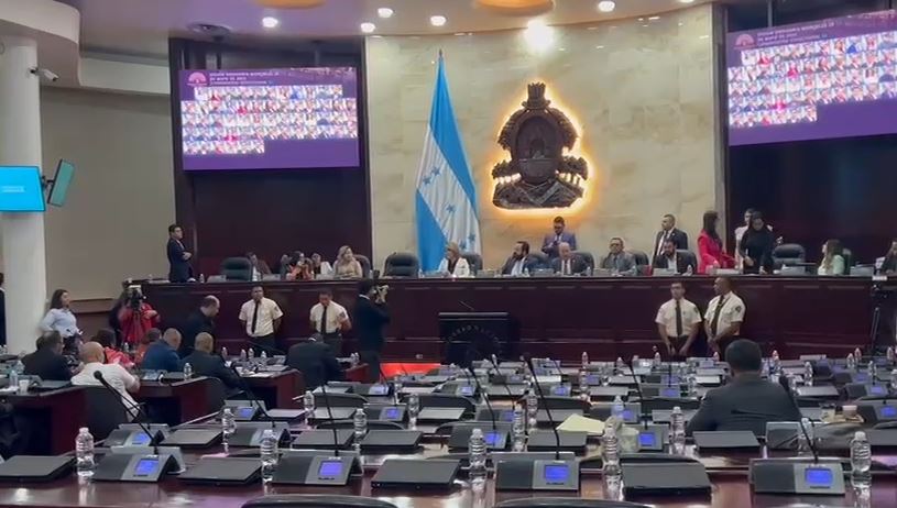 Un hemiciclo legislativo completamente vacío, así lucía el Congreso Nacional a las 5:40 PM. La bancada del Partido Nacional al igual que la del Liberal, se encontraban afuera de la sala, intentando entrar.