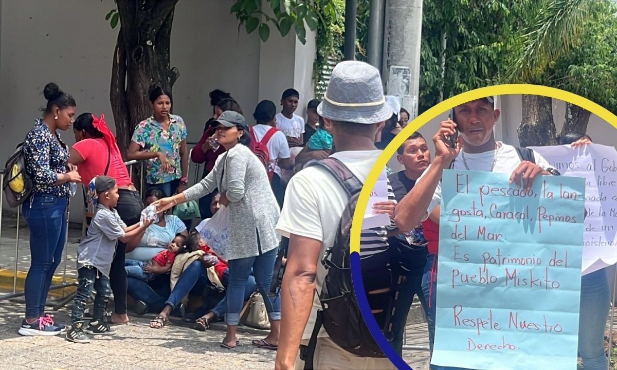Pescadores de La Moskitia hondureña se mantienen apostados a las afueras de Casa Presidencial en la capital, esto asegurando que el canon contributivo de la Dirección General de Pesca y Acuicultura (Digepesca).