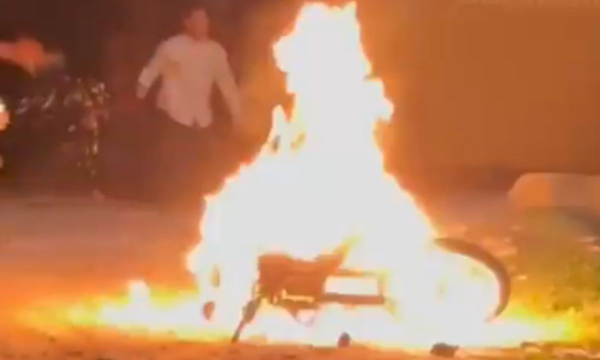 La revuelta dejó como resultado quemadas las dos motocicletas en las que se transportaban y a los cuatro policías militares atrincherados en un estancamiento militar que poseen en la zona.