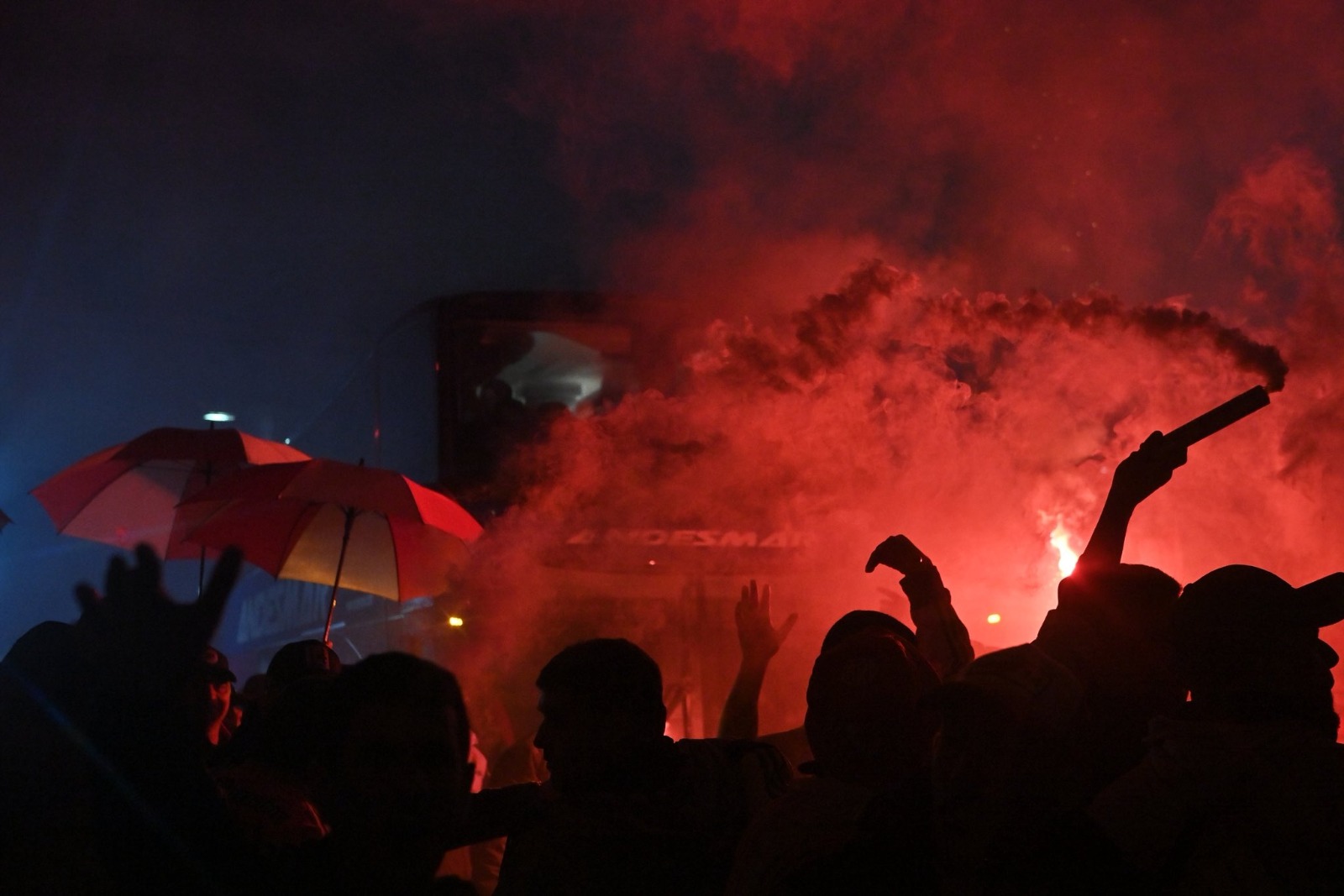 Franco Mastantuono dio la nota de la jornada porque se lo volvió a ver con la vestimenta oficial de la Banda después de su estreno con la selección argentina en su primera convocatoria a la Mayor. Además, el joven de 17 años tuvo un destacado gesto a bordo del ómnibus porque levantó una de sus manos en repetidas ocasiones para saludar a los simpatizantes que estaban a un costado entonando diversos cánticos.