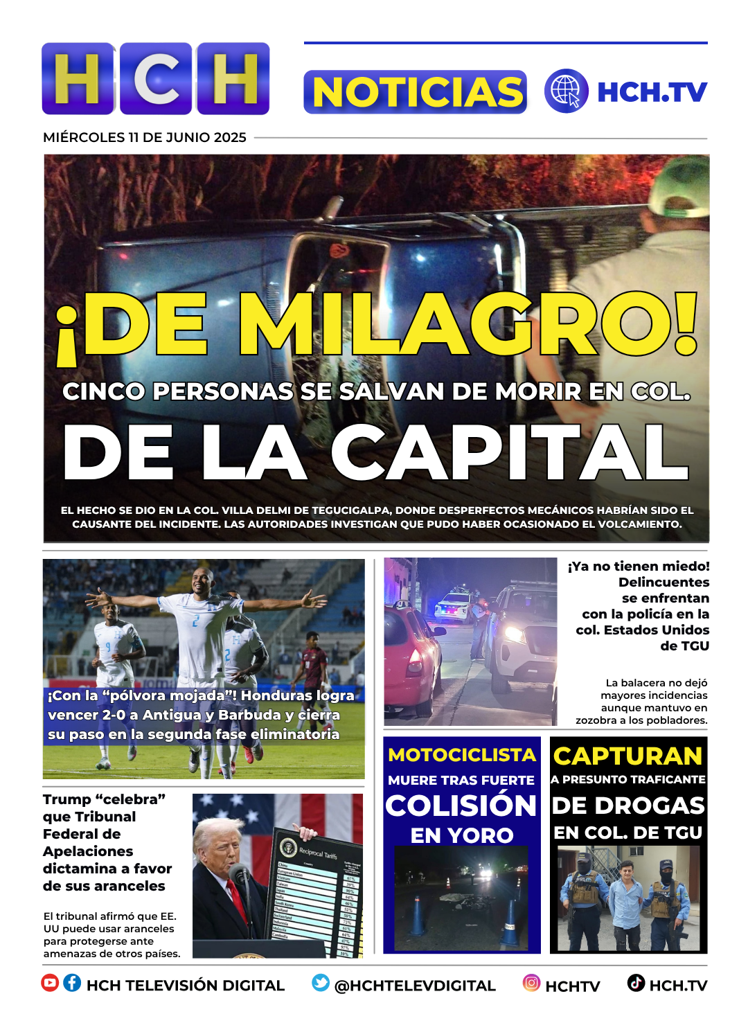 © 2025 - HCH Televisión Digital - Noticias de Honduras y el Mundo. Anillo Periférico, Complejo Empresarial Tegucigalpa, Honduras, C.A. Tel: (504) 2235-3245 / 2235-3246 / 2235-4875 / 2235-4876 LLÁMENOS GRATIS DESDE EE.UU: 3052801682 y 3052801735 © Copyright 2025 - HCH Televisión Digital. Todos nuestros contenidos están protegidos con derechos de autor.