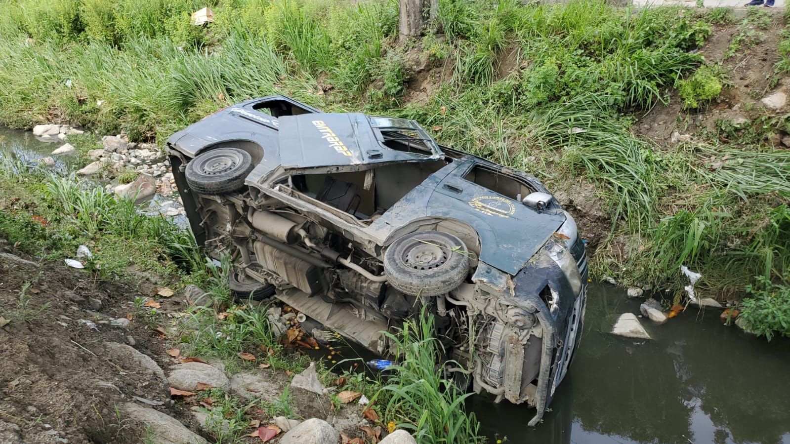El conductor de un microbús de Lomas del Carmen, que se supone conducía a exceso de velocidad, terminó volcado al fondo del canal de agua en la colonia Villa Olímpica de San Pedro Sula, Cortés.