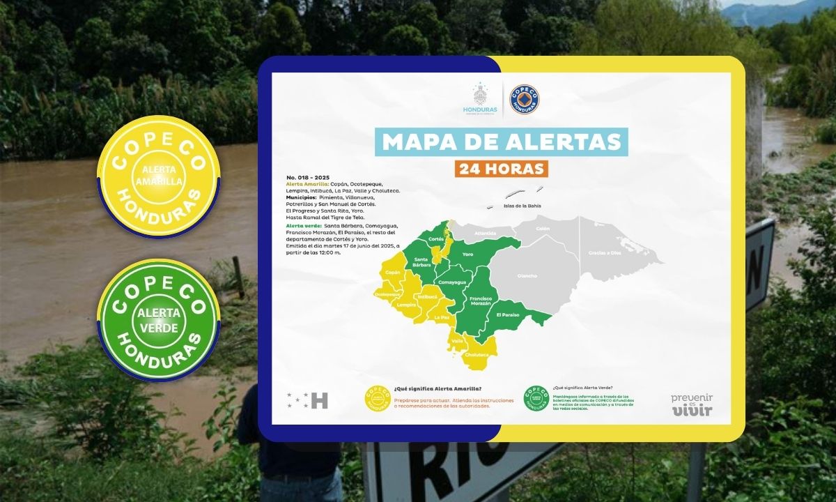 De esta forma, se mantienen en alerta verde los departamentos de Cortés, Santa Bárbara, Comayagua, Yoro, Francisco Morazán y El Paraíso; mientras que, en amarilla se mantienen Copán, los caudales cercanos al río Ulúa, Ocotepeque, Lempira, Intibucá, Valle y Choluteca.
