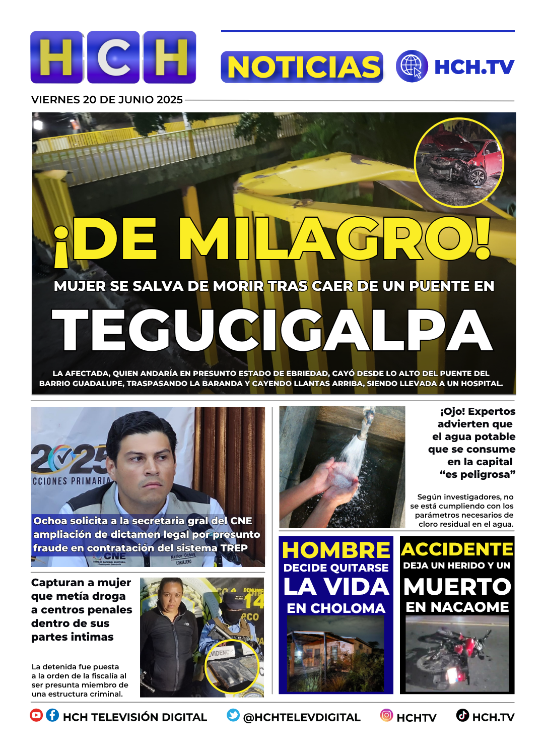© 2025 - HCH Televisión Digital - Noticias de Honduras y el Mundo. Anillo Periférico, Complejo Empresarial Tegucigalpa, Honduras, C.A. Tel: (504) 2235-3245 / 2235-3246 / 2235-4875 / 2235-4876 LLÁMENOS GRATIS DESDE EE.UU: 3052801682 y 3052801735 © Copyright 2025 - HCH Televisión Digital. Todos nuestros contenidos están protegidos con derechos de autor.
