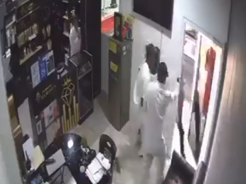 En un nuevo vídeo, se observa a los hombres pedir agua a la encargada de la joyería, seguidamente, le llamaron al vigilante, intentaron quitarle su pistola y le advirtieron que no se resistiera.