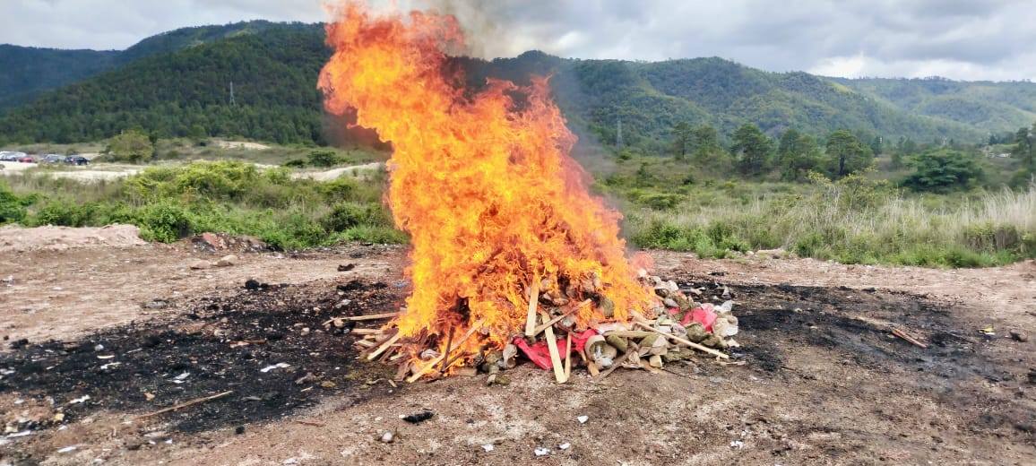 Autoridades policiales realizaron este jueves la incineración de una fuerte cantidad de droga incautado en operaciones en varias partes del país.