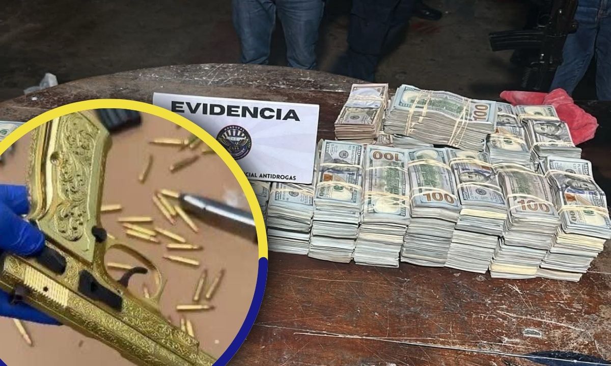 Durante el operativo fueron detenidas dos personas y se logró la incautación de un fuerte arsenal: 10 fusiles de guerra de distintos calibres, 4 pistolas (dos de ellas bañadas en oro), 2 miras telescópicas, así como más de 100 proyectiles de diversos calibres, incluyendo municiones de uso militar como el calibre 40 mm. Además, se confiscaron 19 cargadores para fusil, 4 para pistola, y 27 paquetes de dinero en moneda extranjera, los cuales sumaron un total de 2,108,970 dólares estadounidenses.