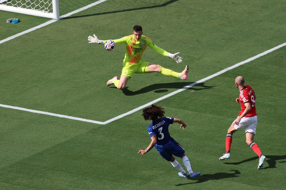 Sin el retroceso de Fideo sobre la derecha, Fredrik Aursnes debía intentar controlar a Cole Palmer y Marc Cucurella sin éxito. Y no fue casualidad que la ocasión más clara llegó en los pies del español. Cucurella enganchó en el área y ejecutó un remate que iba a terminar en gol hasta que apareció el zaguero central António Silva para rechazar la pelota en la línea a los 19 minutos. Segundos después, Anatoliy Trubin evitó el primero con un manotazo a puro reflejo contra Palmer.