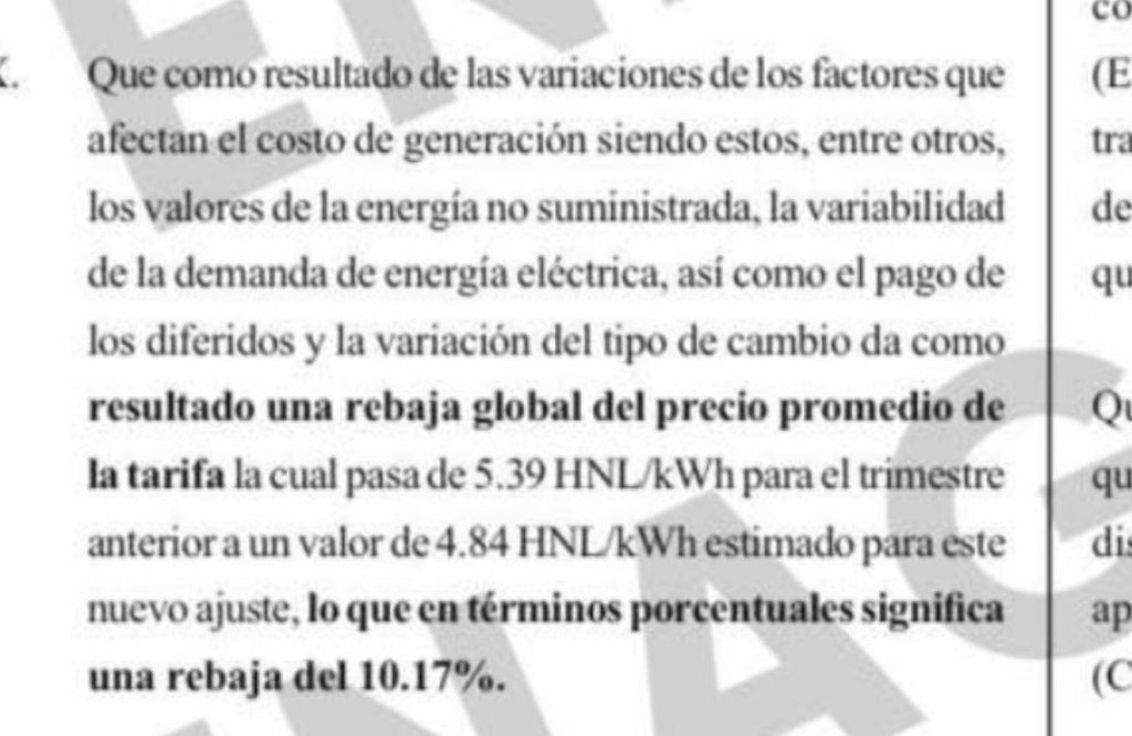 Tras ser anunciada la medida en beneficio de la población, este viernes se ha publicado en el Diario Oficial La Gaceta la rebaja del 10.17% en la tarifa eléctrica, misma tendrá una vigencia de tres meses.