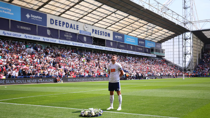En la grada visitante, miles de aficionados del Liverpool portaron camisetas con el nombre del futbolista, bufandas y carteles con mensajes de despedida. Durante el desarrollo del amistoso, los homenajes no cesaron. Al minuto 20, la afición red se puso de pie y entonó la tradicional canción dedicada al portugués, a la vez que ambas hinchadas se sumaron en un prolongado aplauso que abarcó todo ese minuto, el mismo número que portaba Jota en la camiseta. Liverpool expresó públicamente: “Nuestro más sincero agradecimiento a todo el equipo de Preston North End por organizar un tributo tan sentido y cuidadoso”.